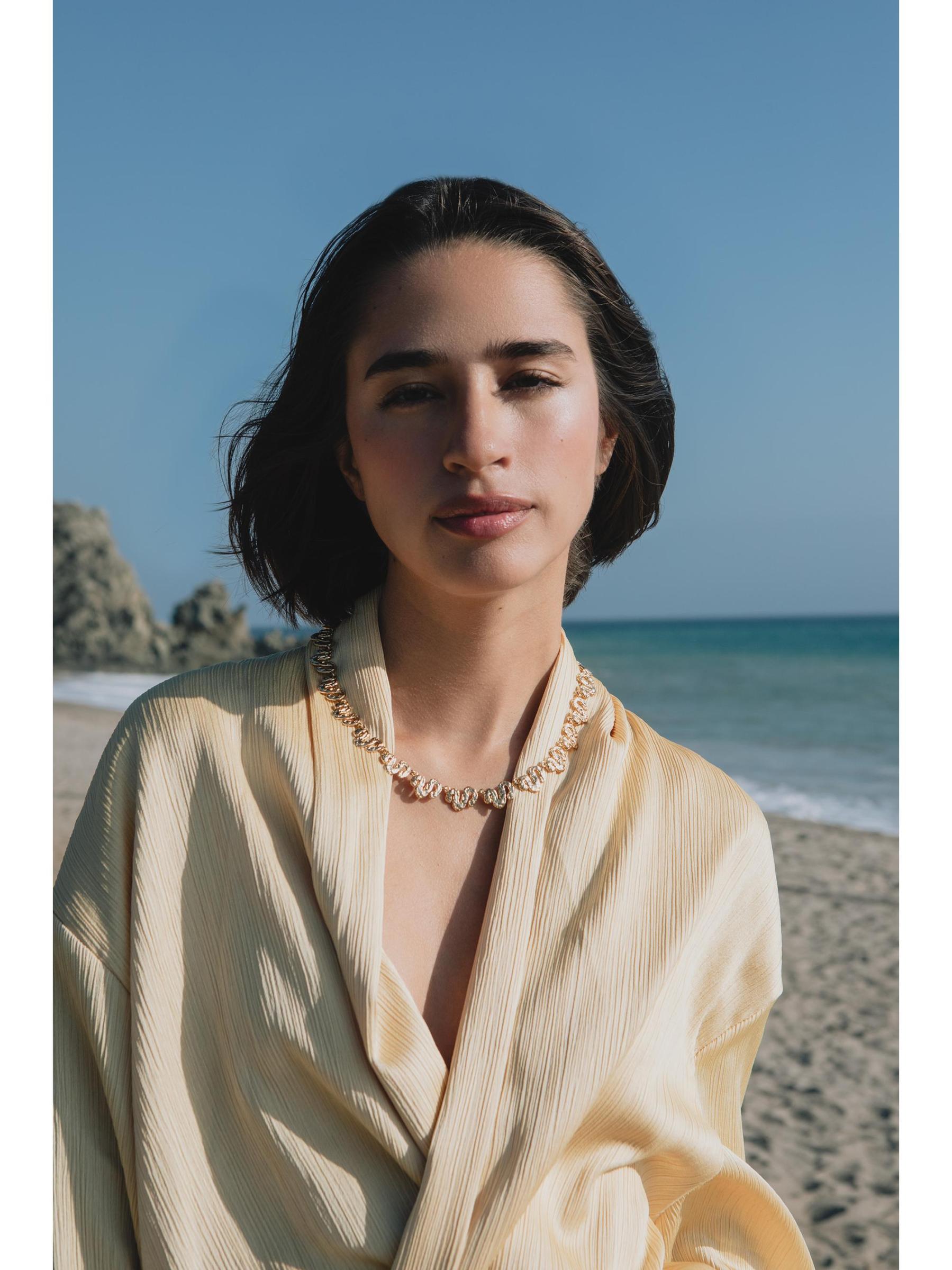 هذه القلادة ذات الياقة Dita من Mignonne Gavigan مصنوعة من روابط مزخرفة تشبه الثعبان مع طلاء لامع بالذهب عيار 14 قيراطًا.