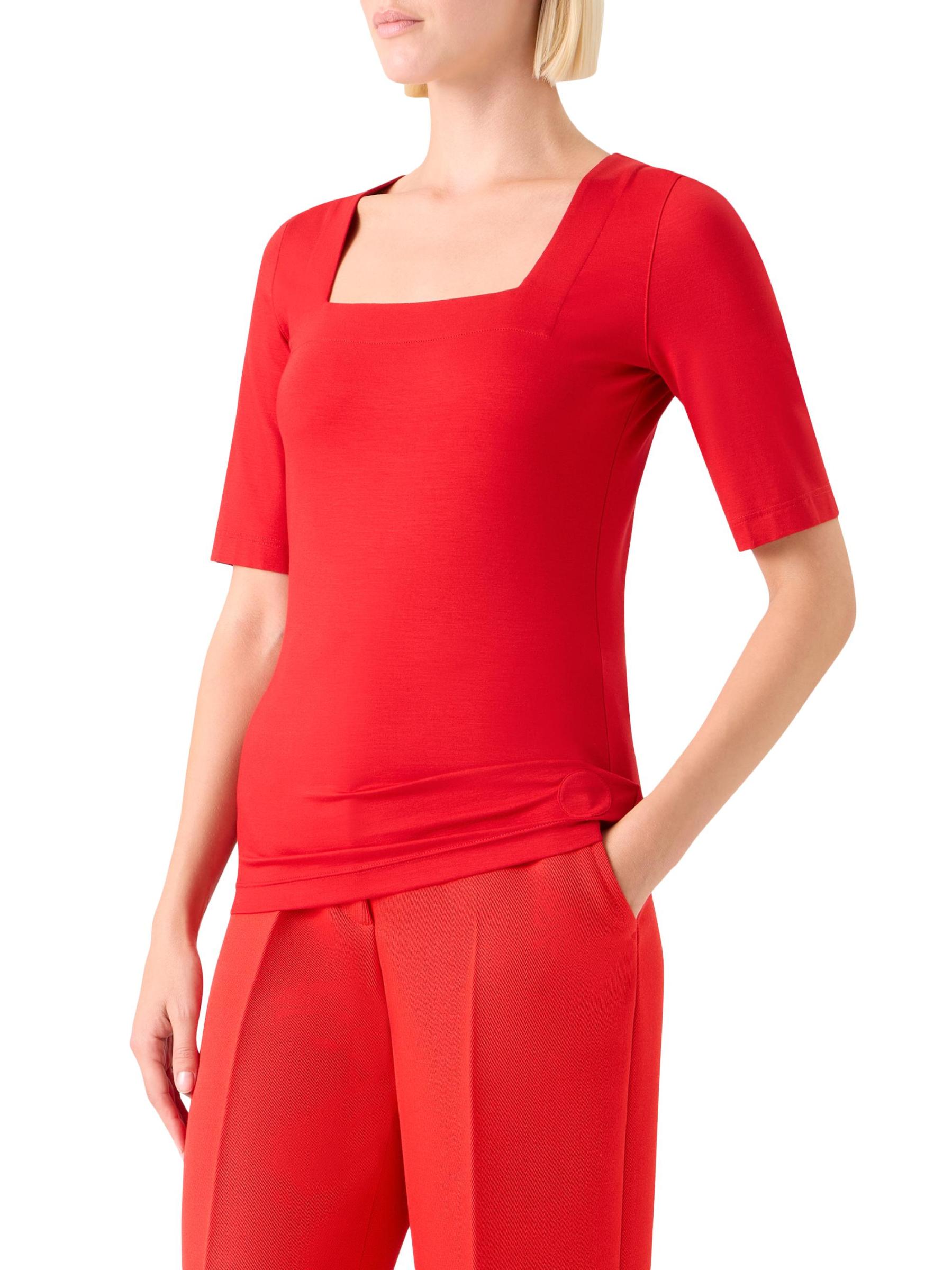 يتميّز هذا التيشيرت المزين بمهارة بزخرفة منقّطة مميّزة من أكريس بونتو على الحافة السفلية، ويمتاز بياقة مربعة أنيقة وأكمام بطول الكوع.رقبة مربعة أكمام بطول الكوع تسحب موديل 95%، إيلاستين 5% تنظيف جاف مستوردة