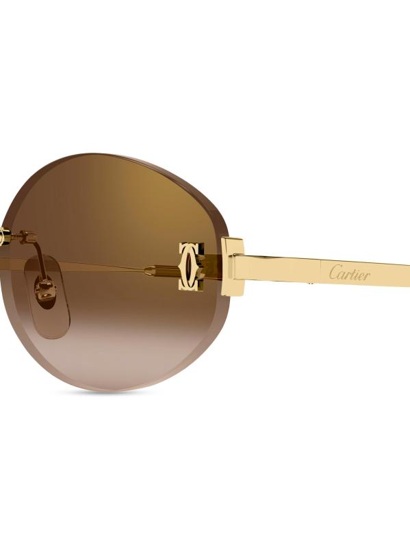 من مجموعة دبل سي. تتميز هذه النظارات الشمسية من كارتييه بتصميم بيضاوي سهل الارتداء وحروف الشعار على الذراعين.
