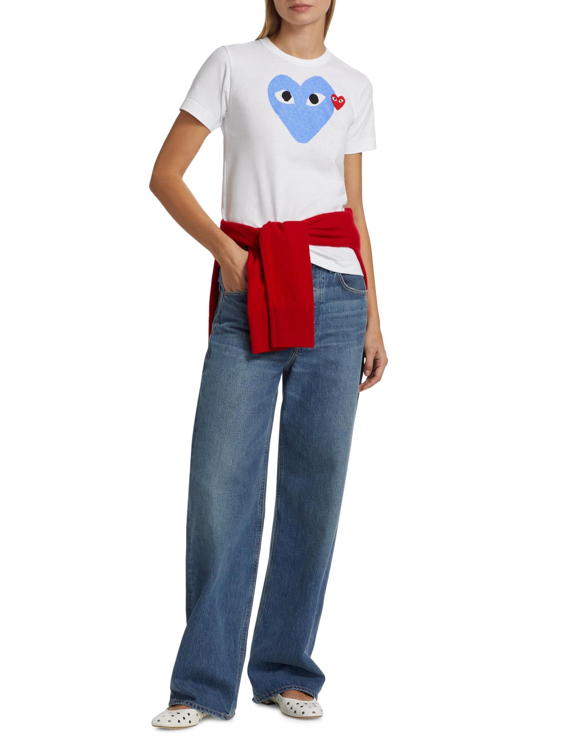 يتميز تي شيرت Commes des Garçons PLAY المصنوع من القطن برسم قلب مزدوج وياقة مستديرة مميزة.