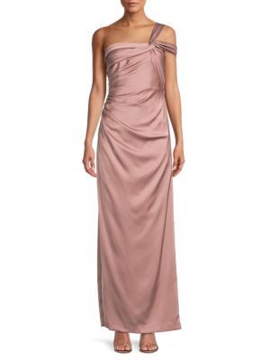 فستان عامودي من الساتان بكتف واحد