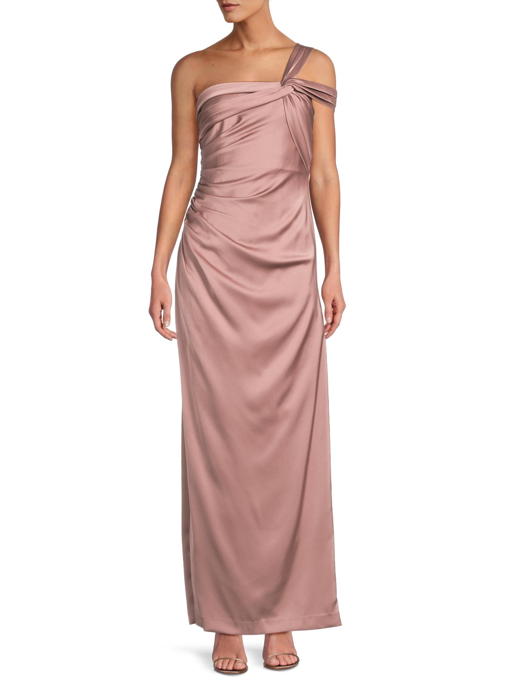 يُضفي فستان Aidan Mattox العمودي المصنوع من الساتان المدعم بالكريب مزيدًا من الأناقة على التصميم من خلال تقويرة رومانسية بكتف واحد وتفاصيل ثنيات.رقبة غير متماثلة أكمام بكتف واحد إغلاق بسحّاب جانبي 100% بوليستر تنظيف جاف مستوردة
