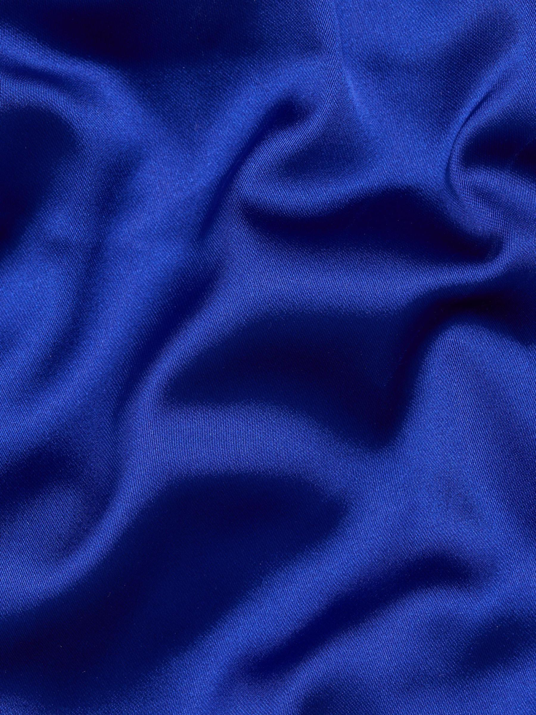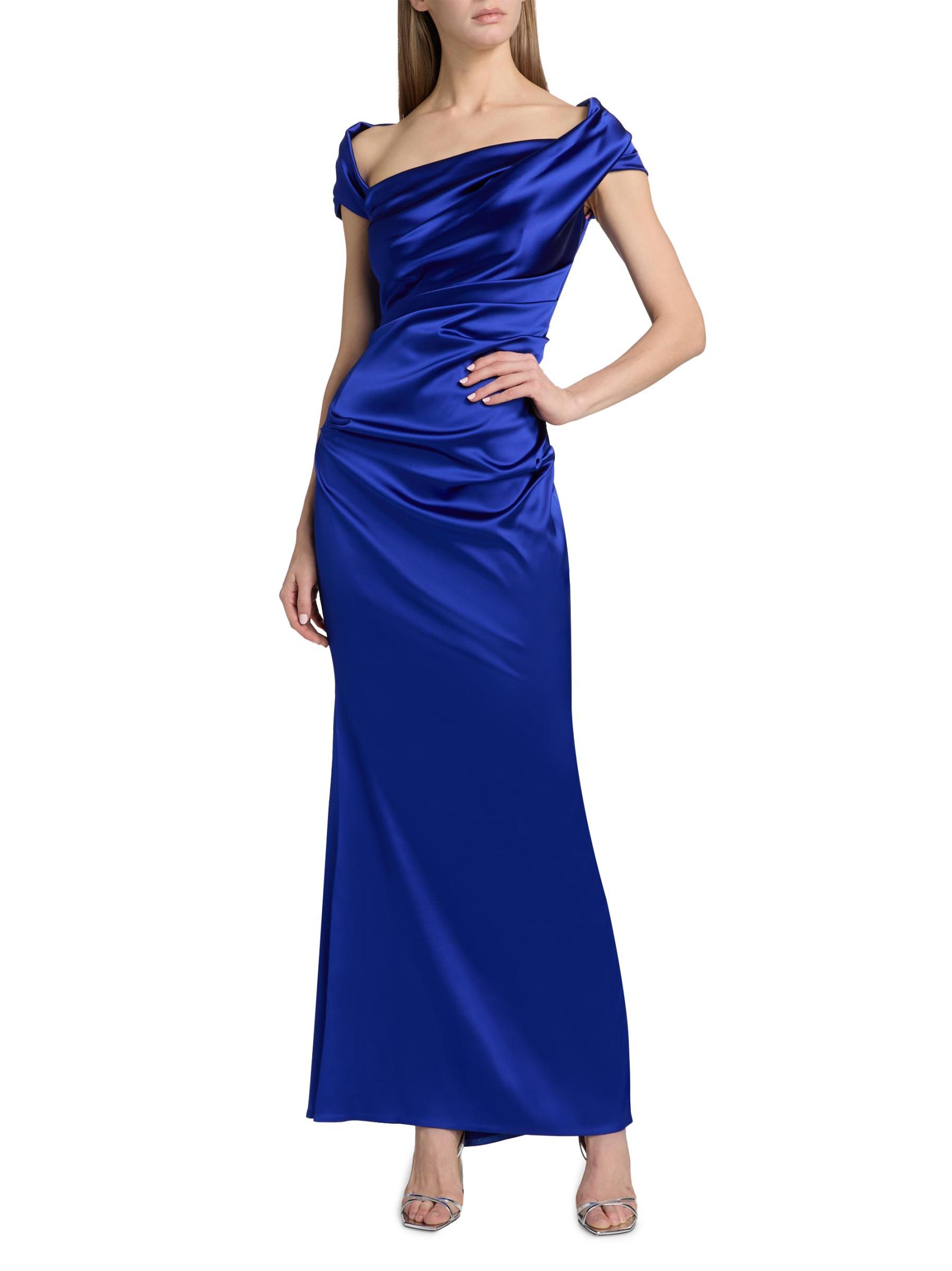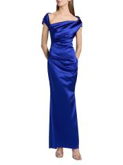 يتميز فستان Talbot Runhof المصنوع من الساتان الفاخر بستائر أنيقة وياقة غير متماثلة.