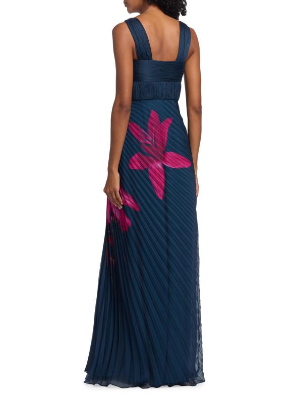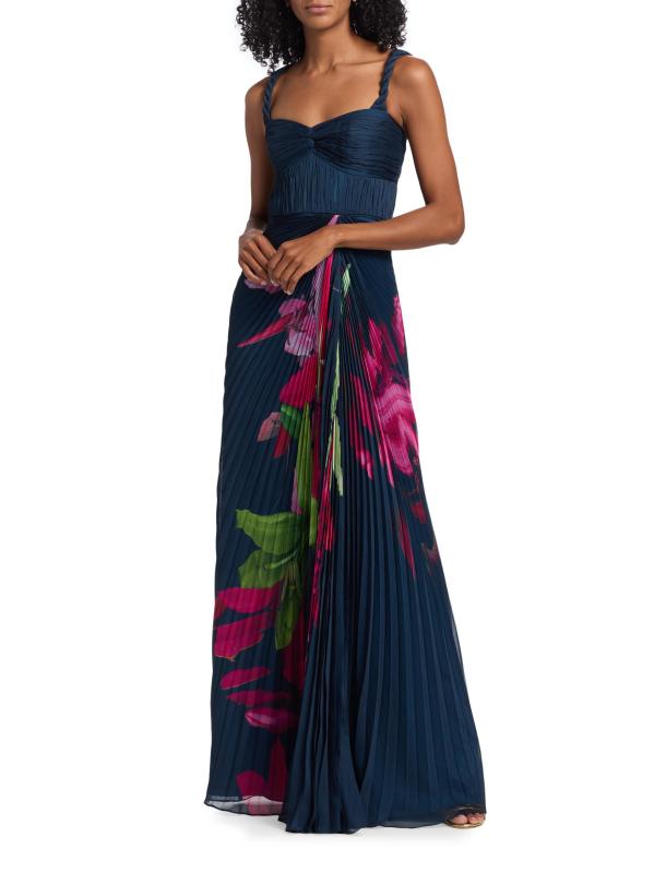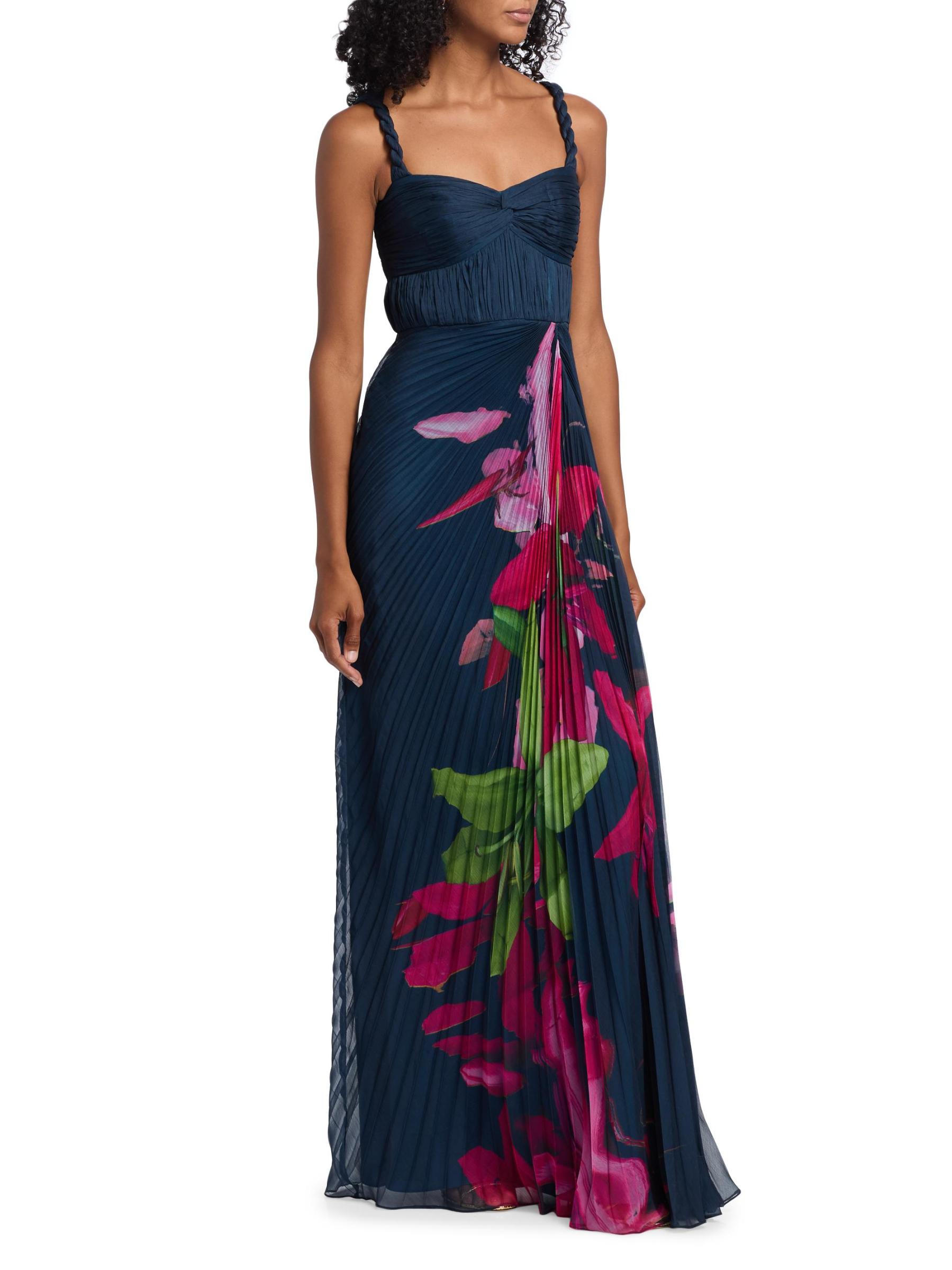 يتميز فستان Drea من Amur بزخارف نباتية نابضة بالحياة، ويتميز بأحزمة مضفرة، وصدر وصدر متجمعين، وتنورة ذات ثنيات أكورديون.رقبة على شكل قلب بدون أكمام إغلاق بسحّاب جانبي 100% بوليستر تنظيف جاف مستوردة