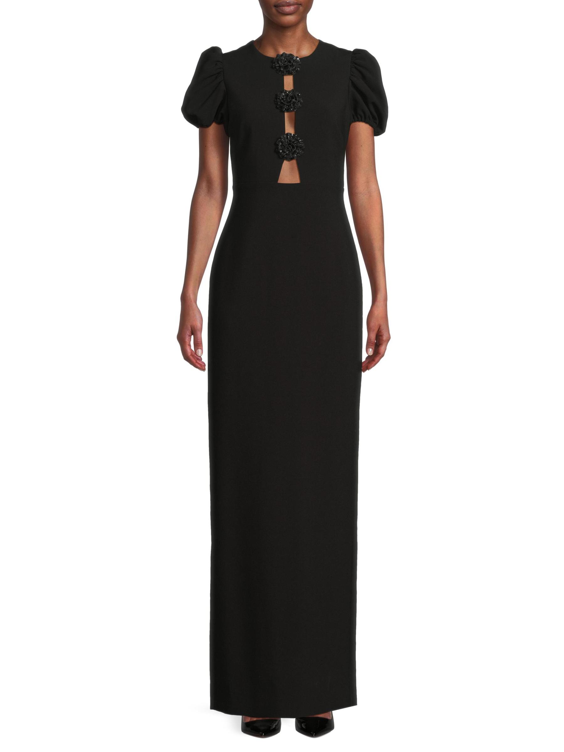 من مجموعة دروب 11. يتميّز فستان Griffen بأكمام منفوخة من Lilkely، المصنوع من مزيج قابل للتمدد، بوريدات مزيّنة بالكريستال في الأمام.رقبة على شكل جوهرة أكمام قصيرة إغلاق بسحّاب خلفي 67% بوليستر/ 27% رايون/ 6% سباندكس تنظيف جاف مستوردة