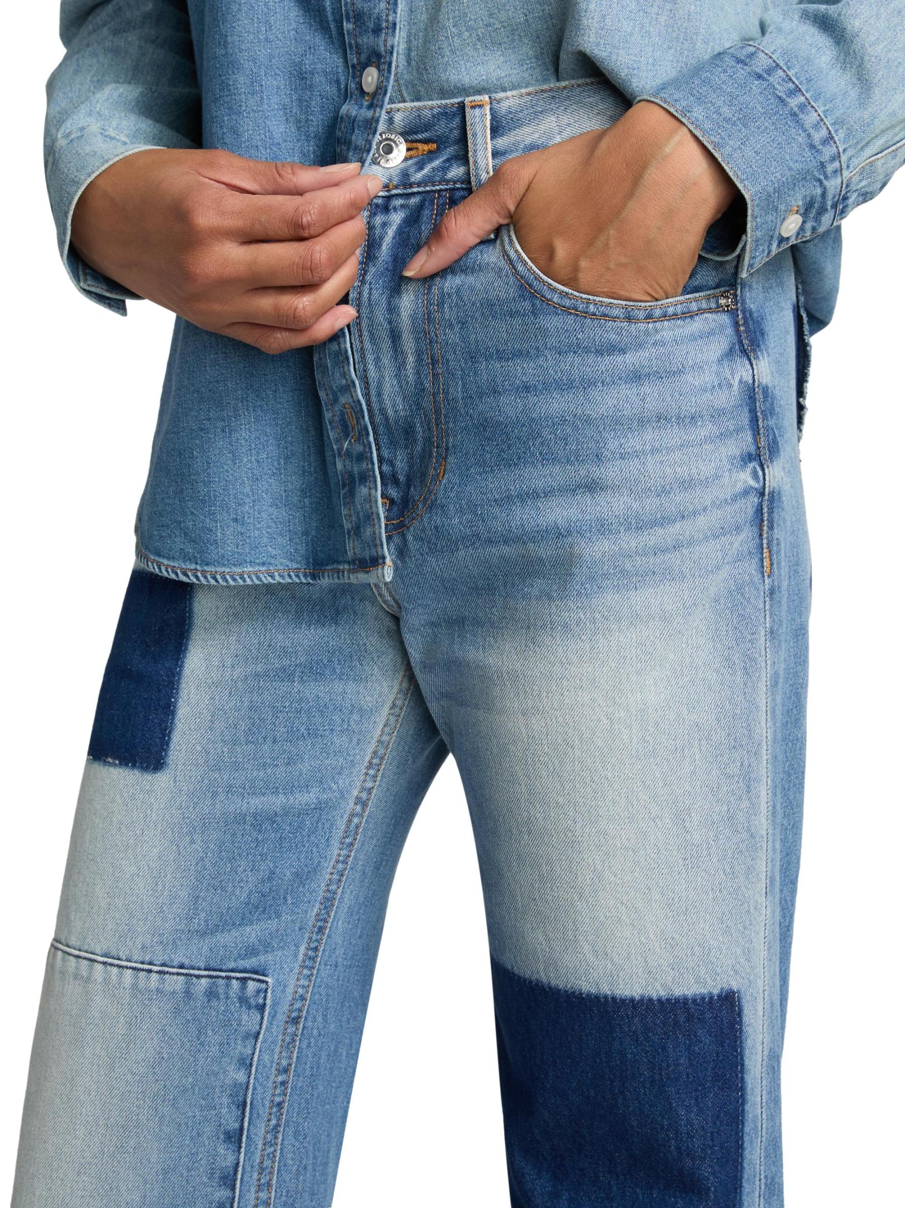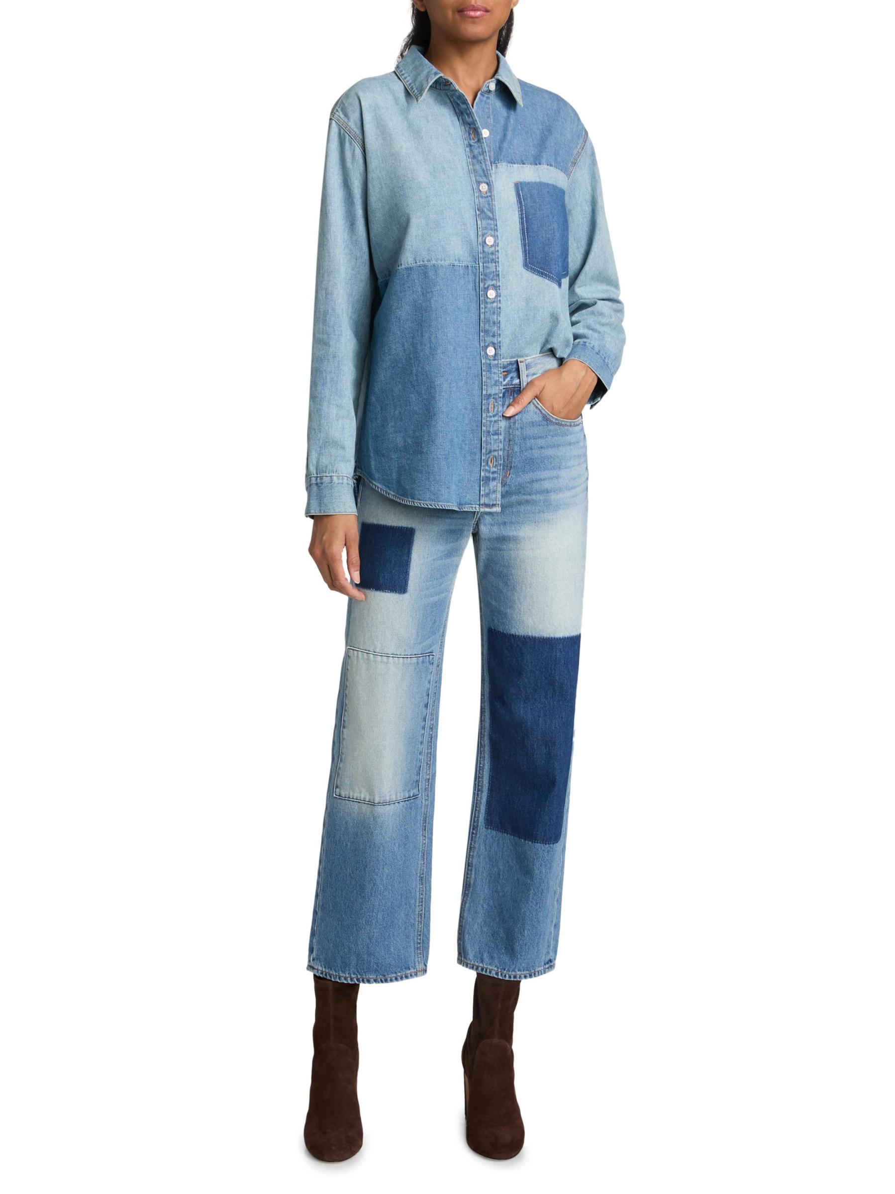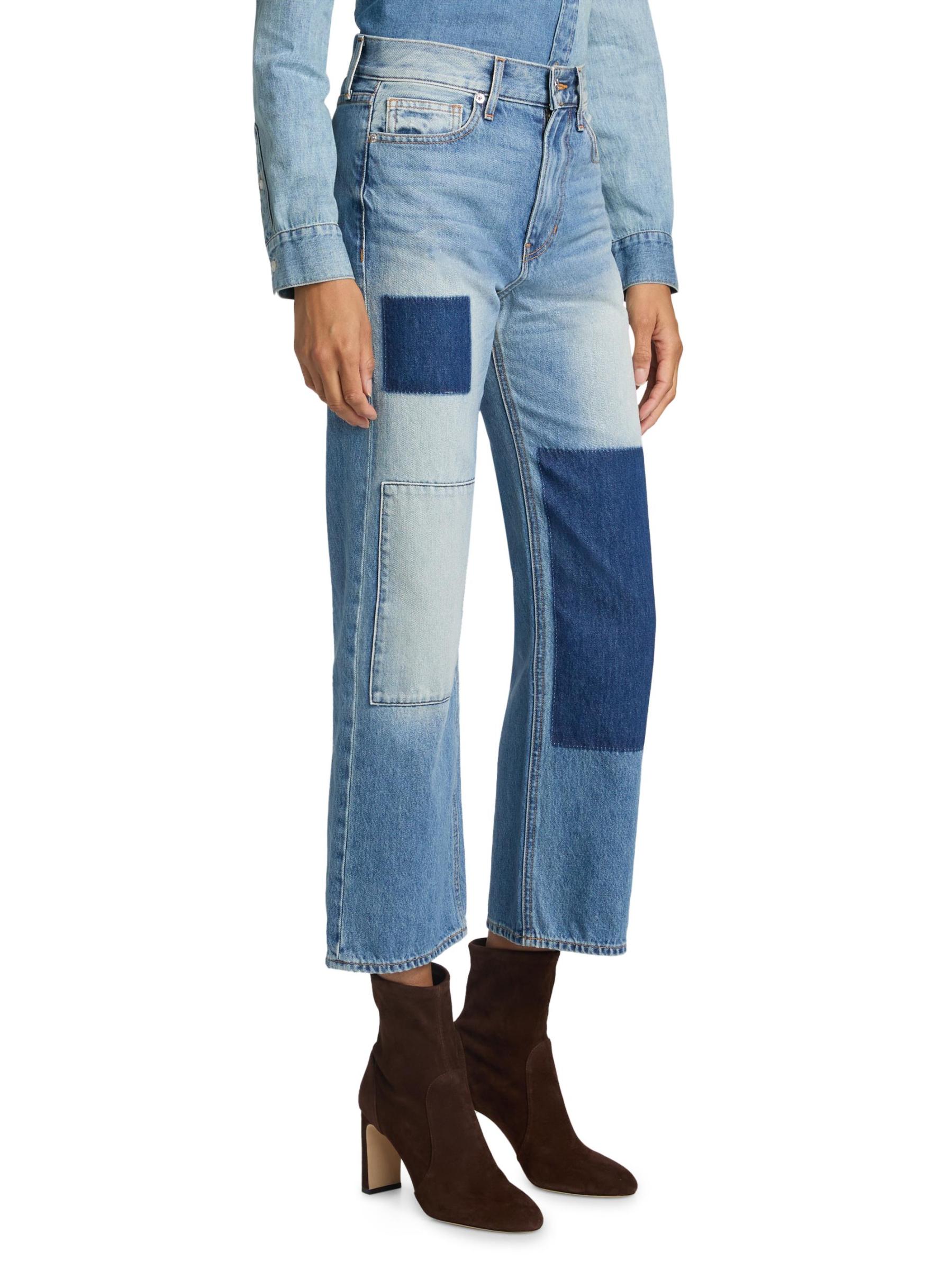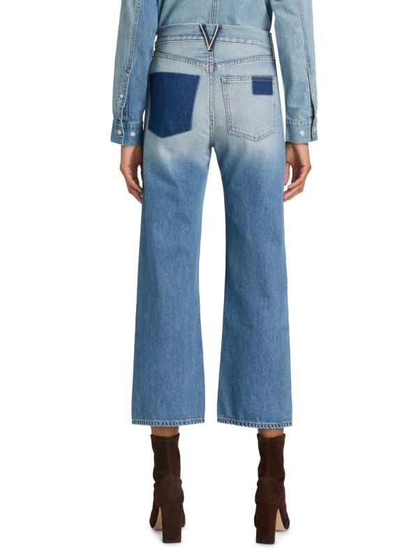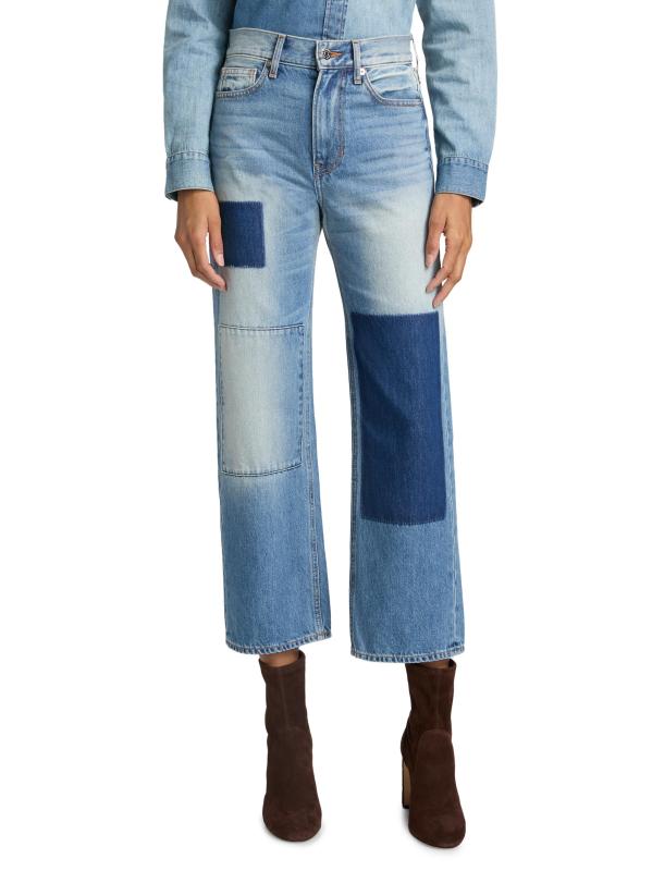 يتميز بنطال ديلان ذو الخمسة جيوب من Veronica Beard بتصميم مرقع وقصّة بمقاس مرتفع على شكل ساق مستقيمة.