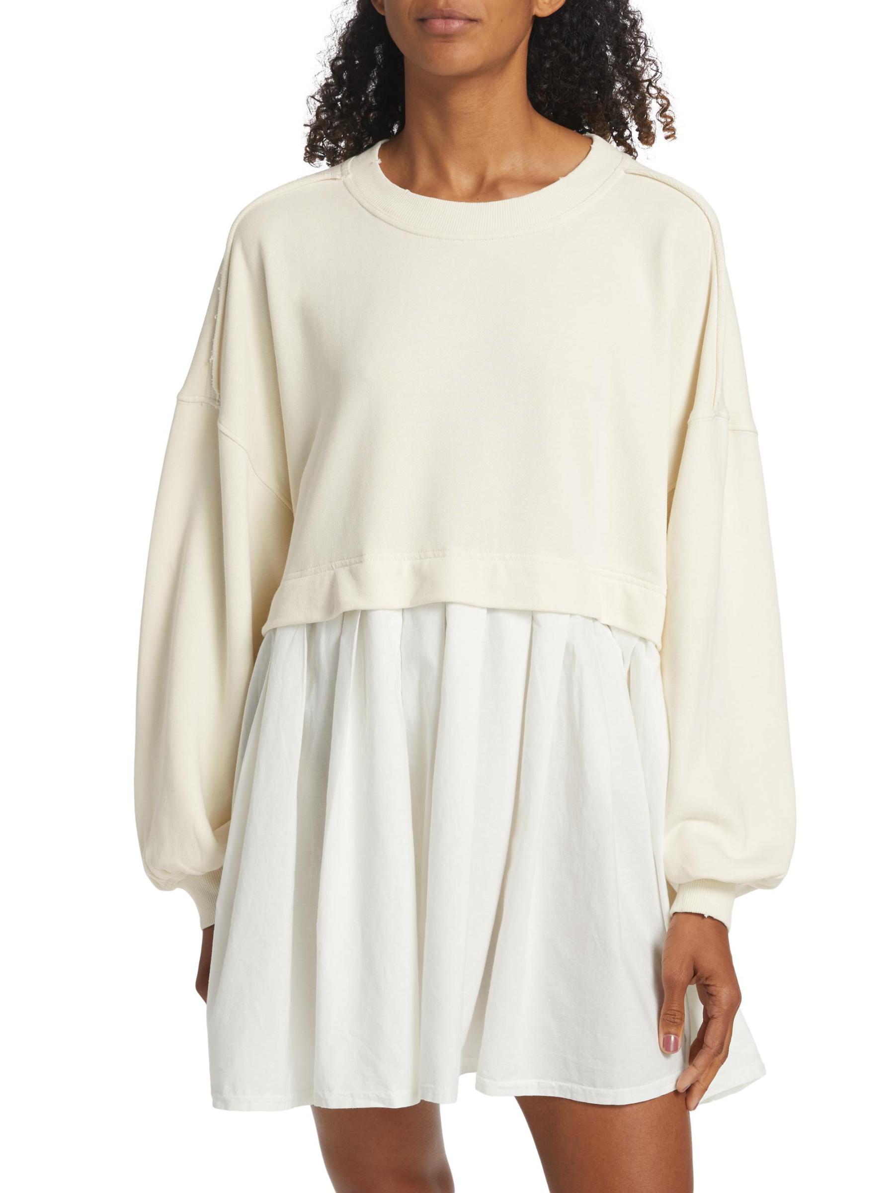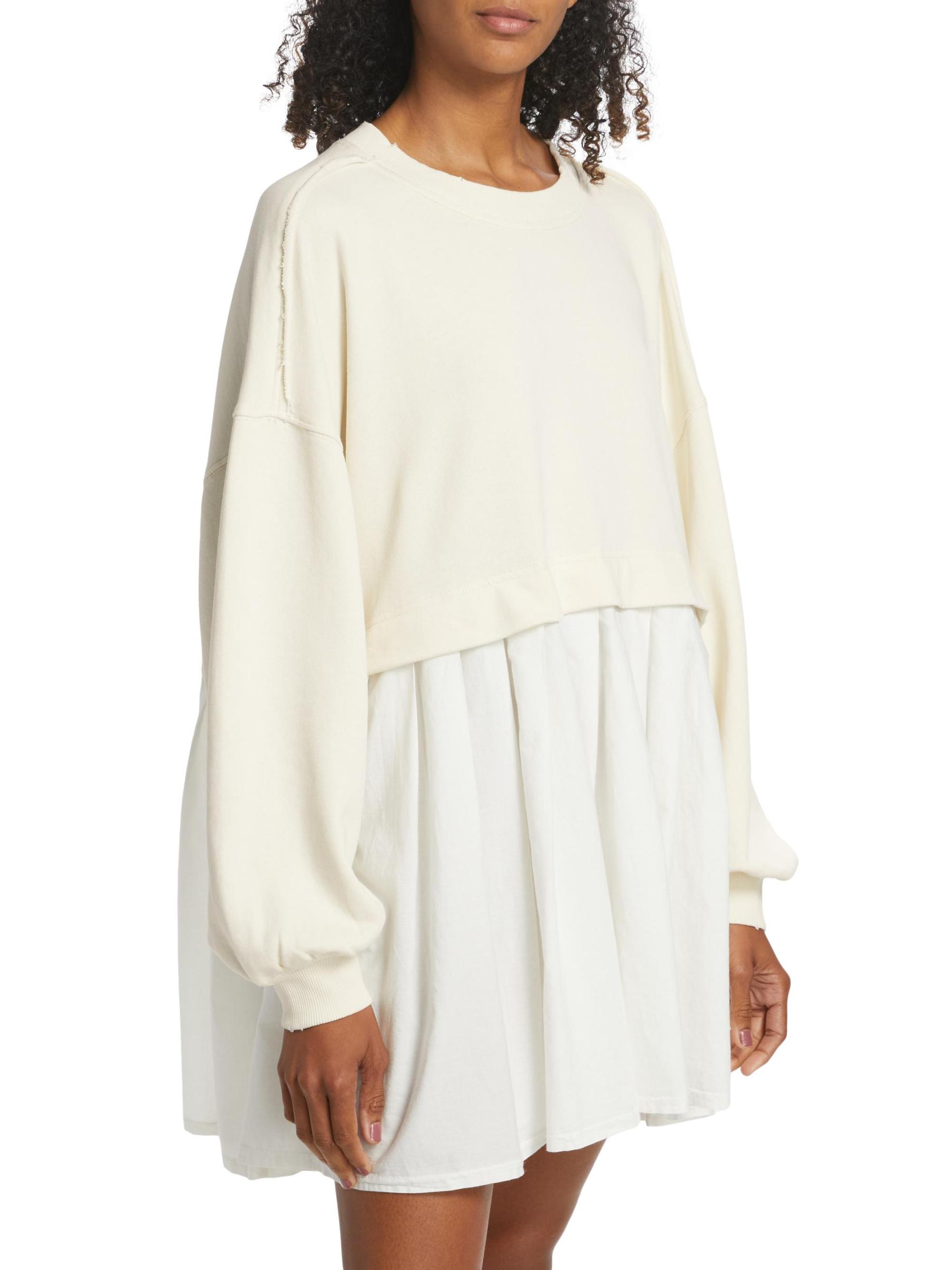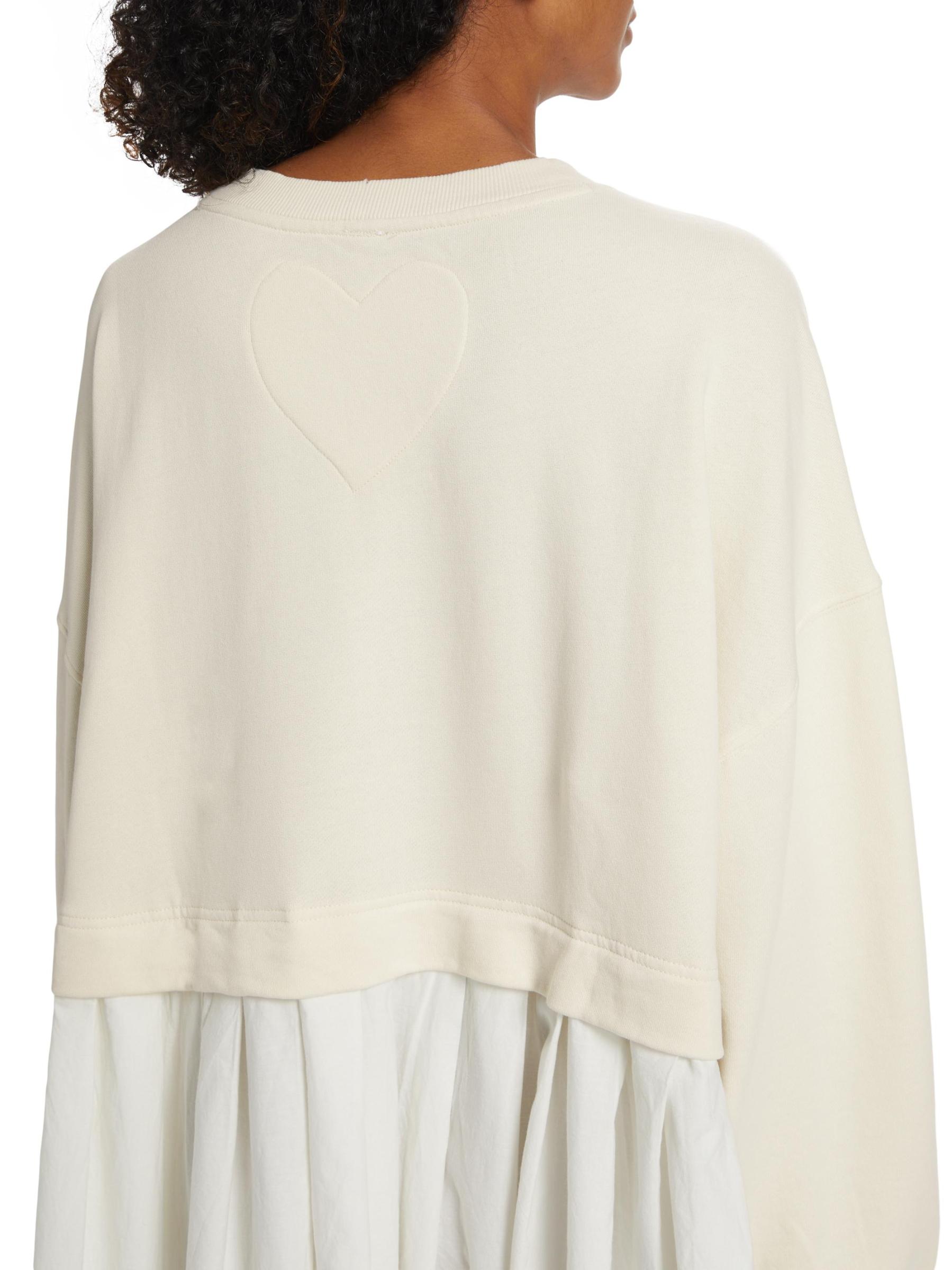 يتميز سويت شيرت Elenor من Free People's بتصميم أرجوحة كبير الحجم مع حافة ديناميكية ذات ثنيات. تُحدد الأكتاف المتدلية والتفاصيل المُغرزة على شكل قلب في الخلف المظهر.