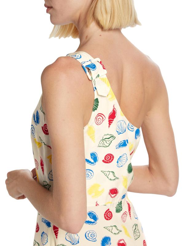 فستان متوسط الطول بكتف واحد بطبعة إيلينا شيل