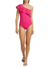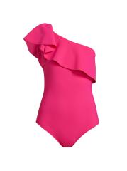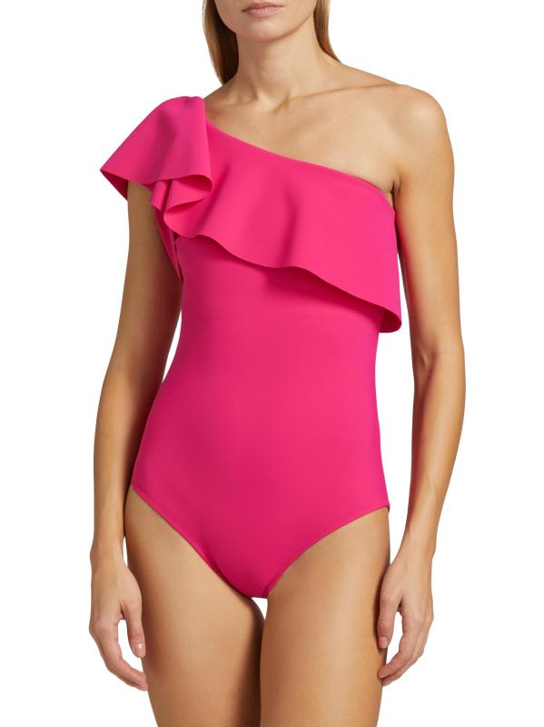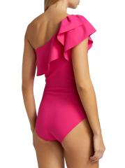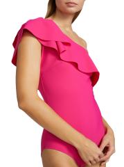 تتميّز هذه المايوه ذات القطعة الواحدة، المُصمّمة بكتف واحد، بطبقة مكشكشة ثلاثية الأبعاد عند خط العنق.
