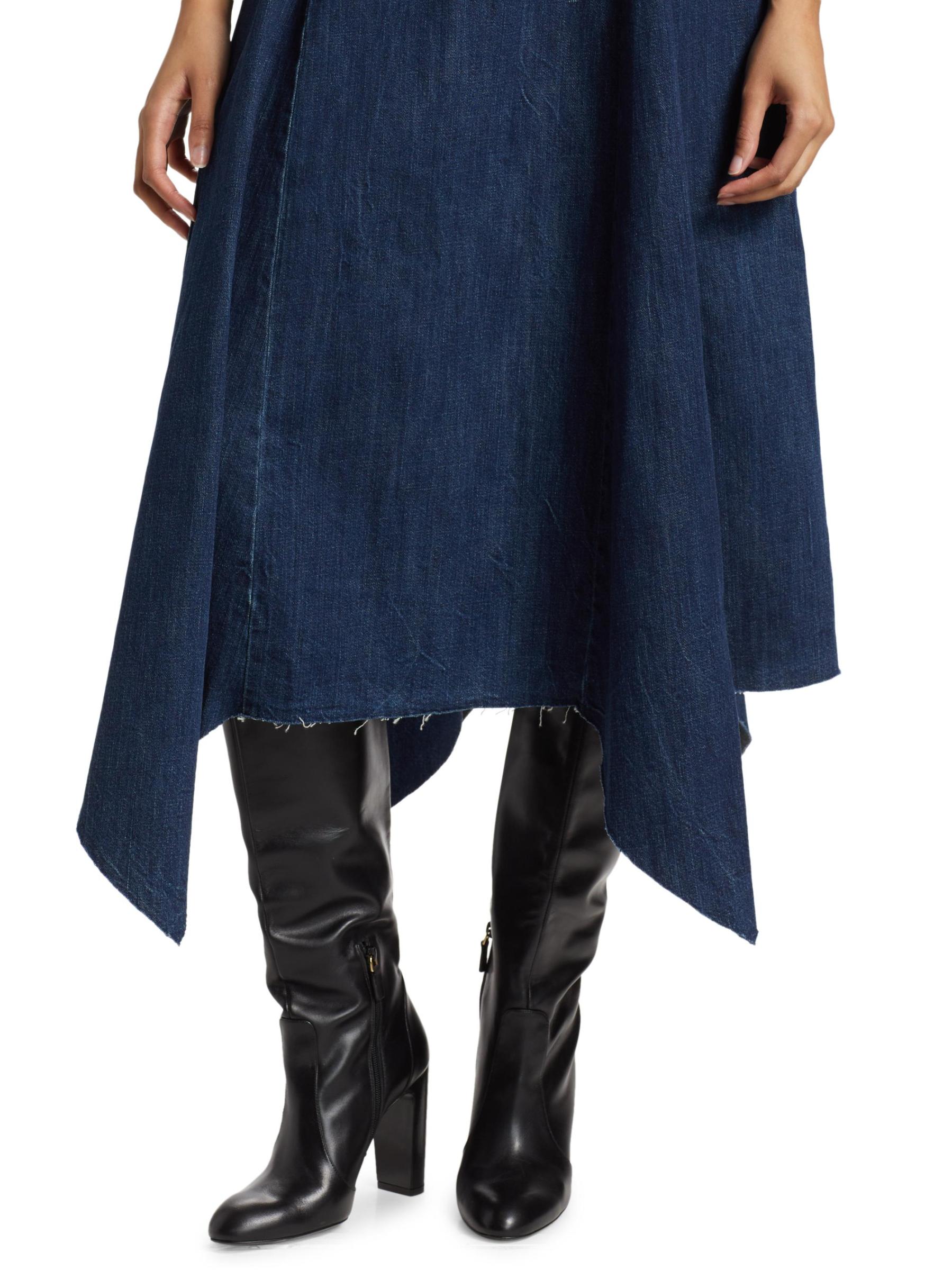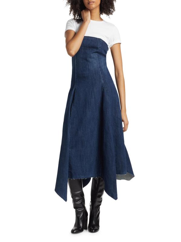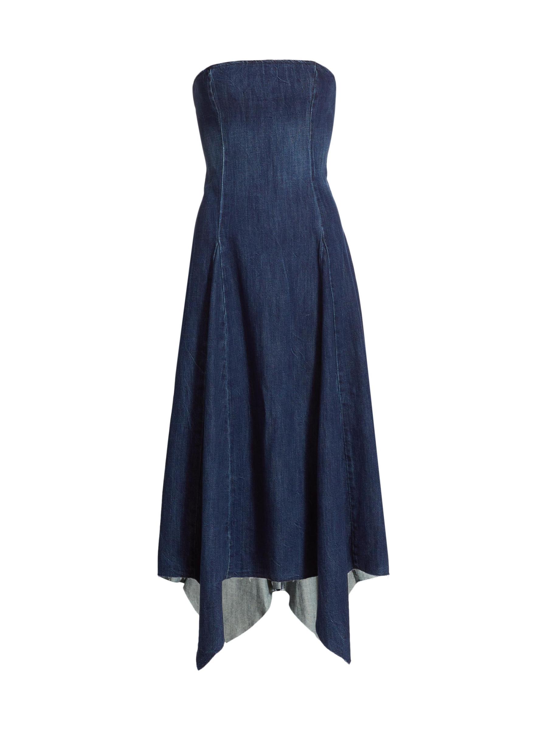 فستان إيليانا دينيم متوسط الطول بدون حمالات
