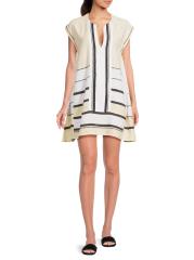 فستان Elina kaftan القصير من Lemlem هو تصميم بلا أكمام مصنوع من الجاكار المنسوج يدويًا.