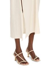 صُنع صندل Elise من aeyde من الجلد الناعم، ويتميز بكعب رقيق وحزام علوي عريض.