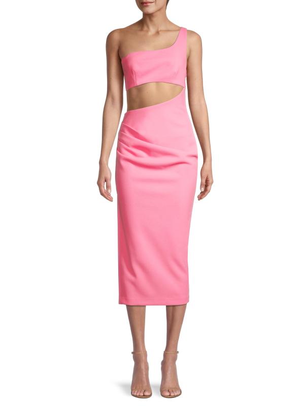 فستان إيليسيبيث كريب متوسط الطول بكتف واحد