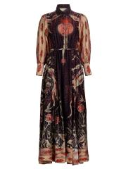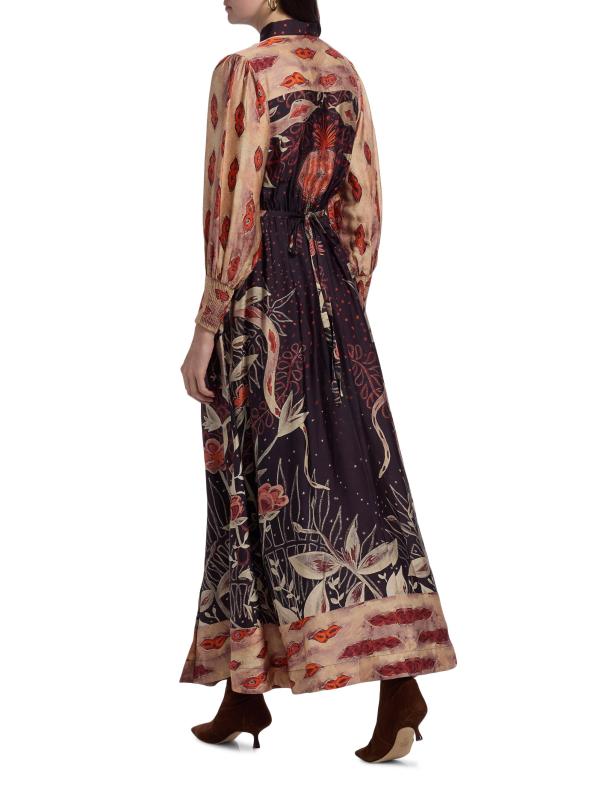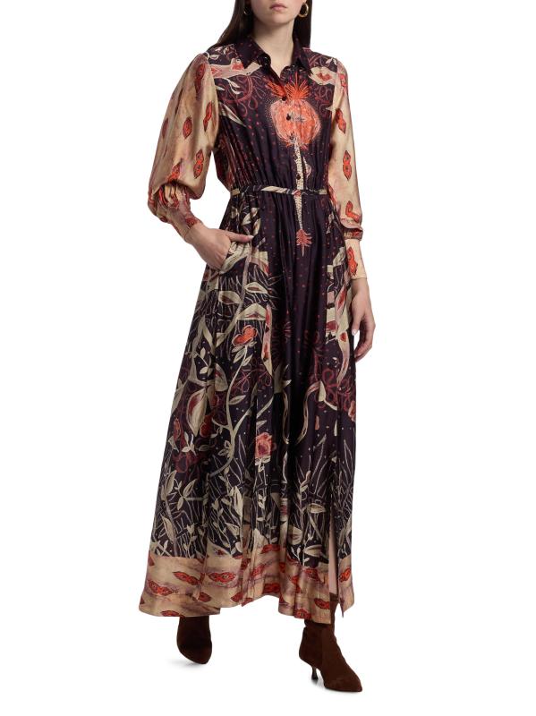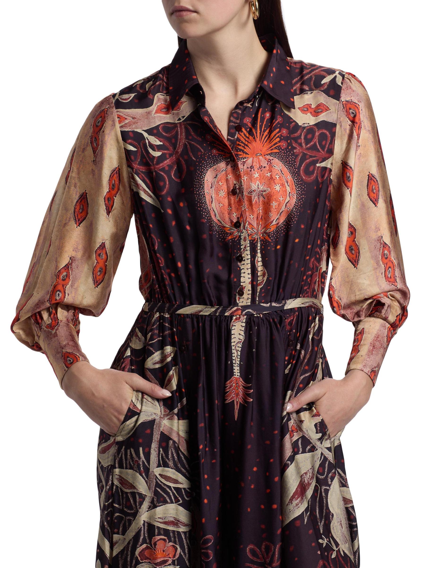 يتميز فستان Elisetta maxi هذا من Carolina K، المصمم بطبعة تعاونية فنية، بياقة مدببة وخصر مطوق وتنورة ذات ثنيات.