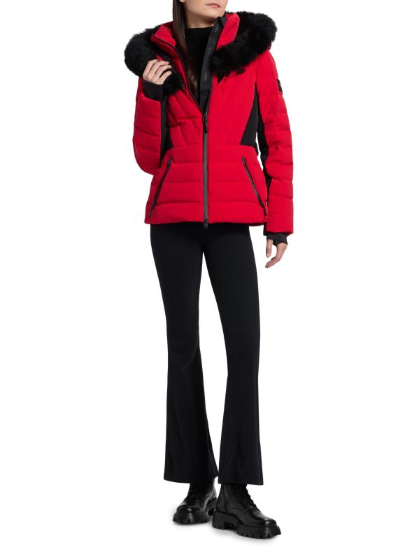 تتميز سترة التزلج Elita من Mackage بتصميم مبطن مُزين بحزام مشبك بشعار يربط الخصر. يتميز هذا الطراز بغطاء رأس مزين بالقماش وطوق حامل والعديد من الجيوب ذات السحّاب على الجانبين والأكمام اليسرى.