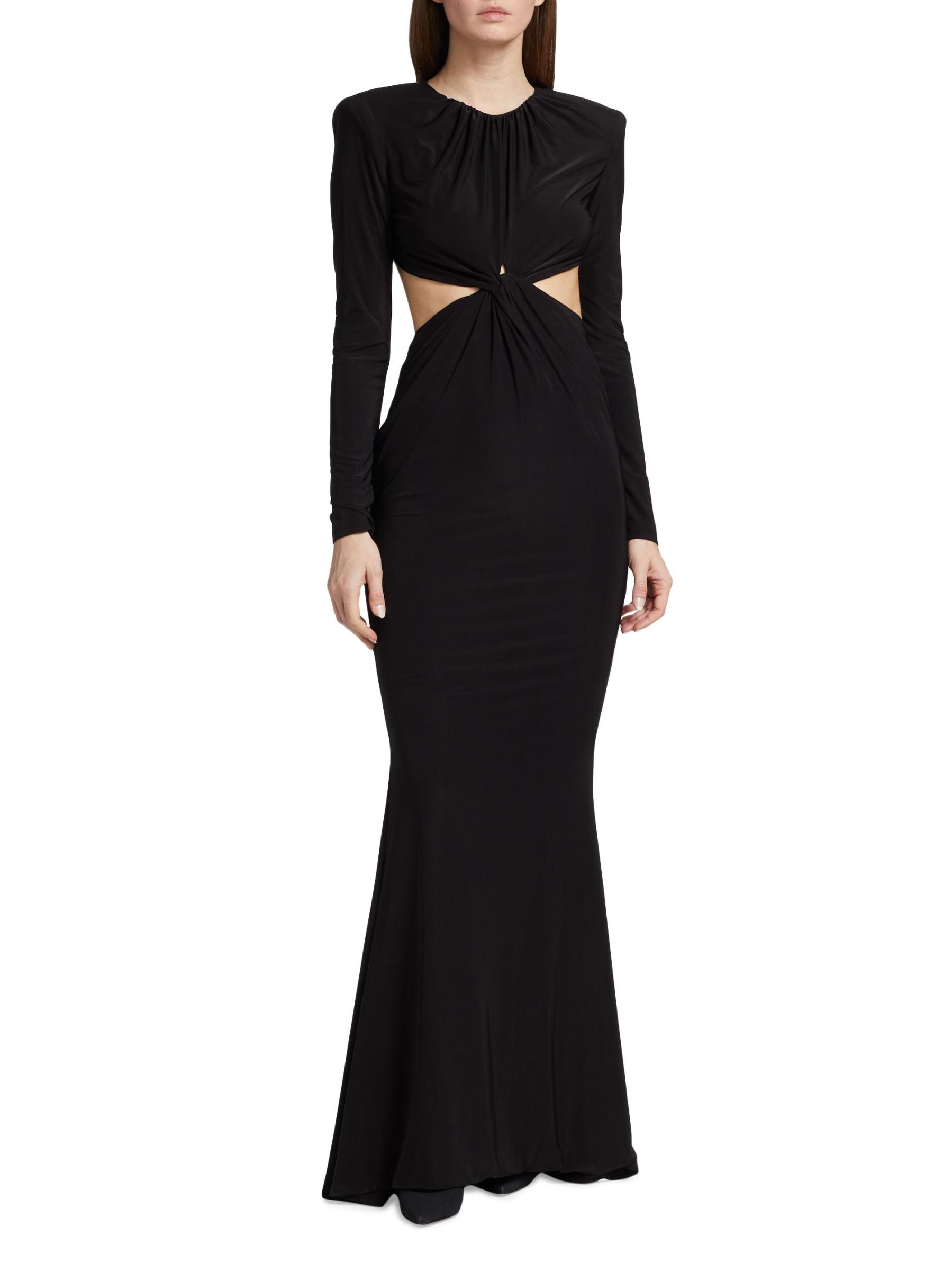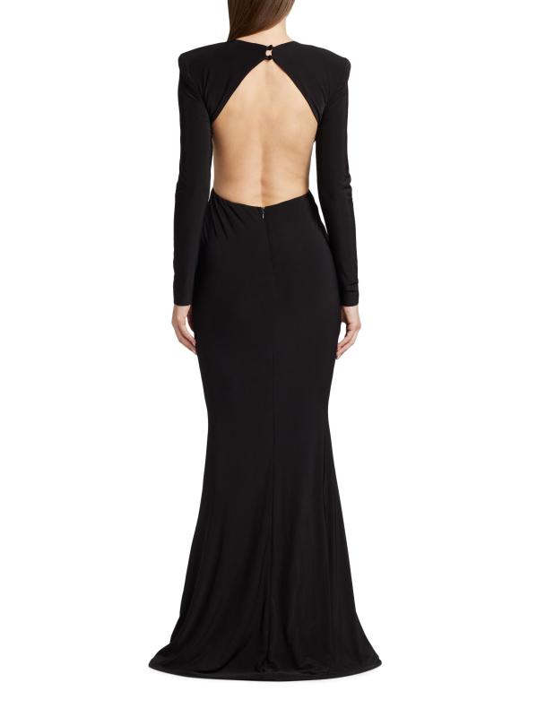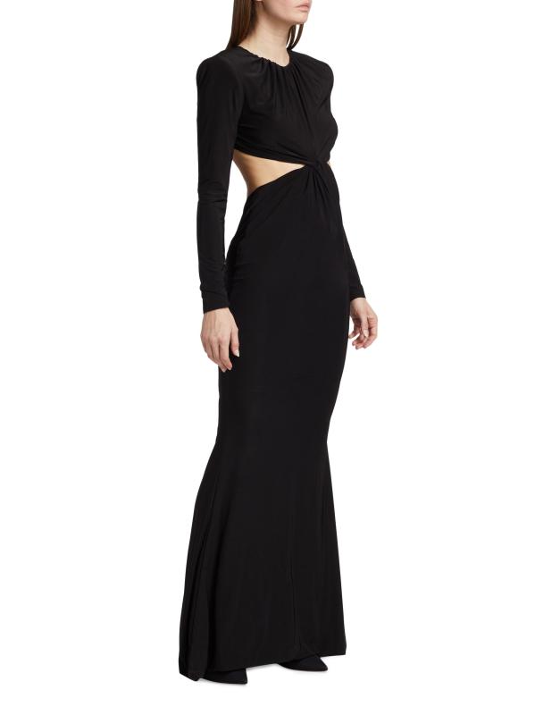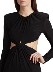 حصري. يتميّز فستان إيلا ماكسي من مايكل كوستيلو، الذي يتميّز بخصر مقصوص جذاب، بتفاصيل مجمّعة لتحسين الصورة الظلية وتشكيلها.