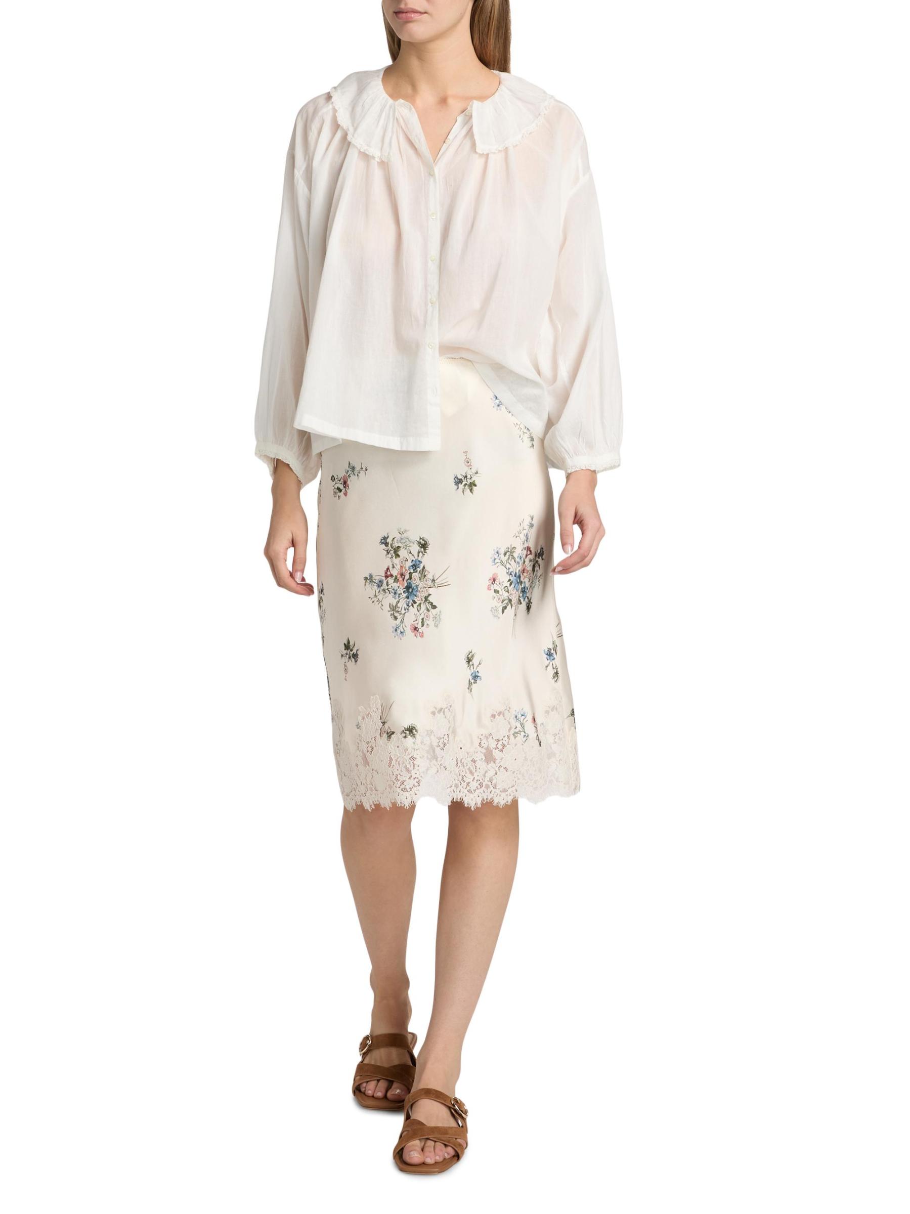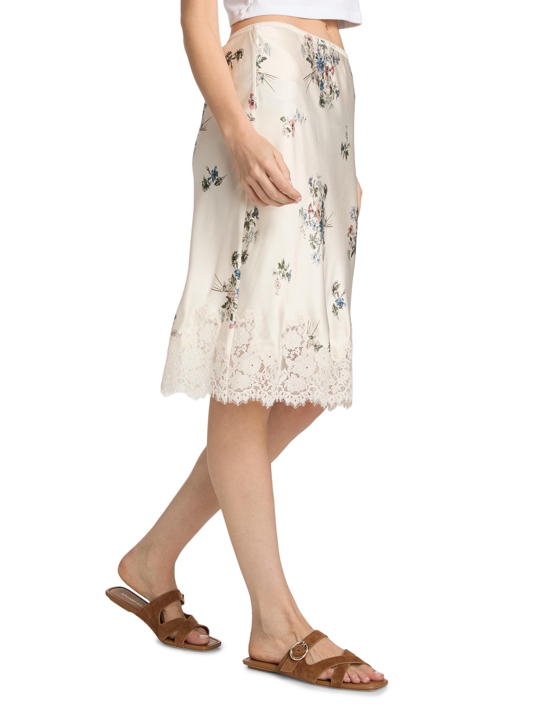 تنورة Elowette متوسطة الطول من الحرير مزين بالدانتيل