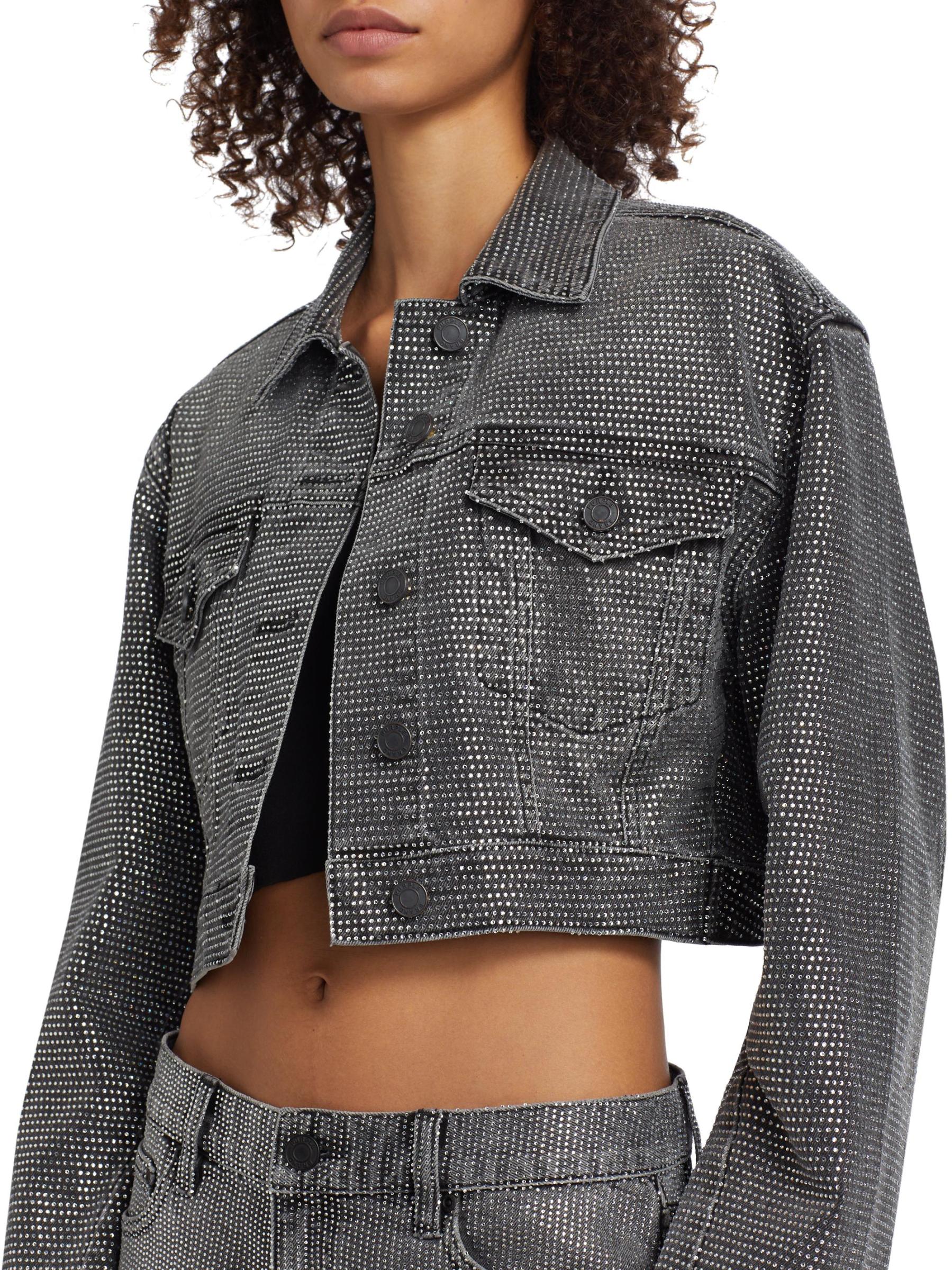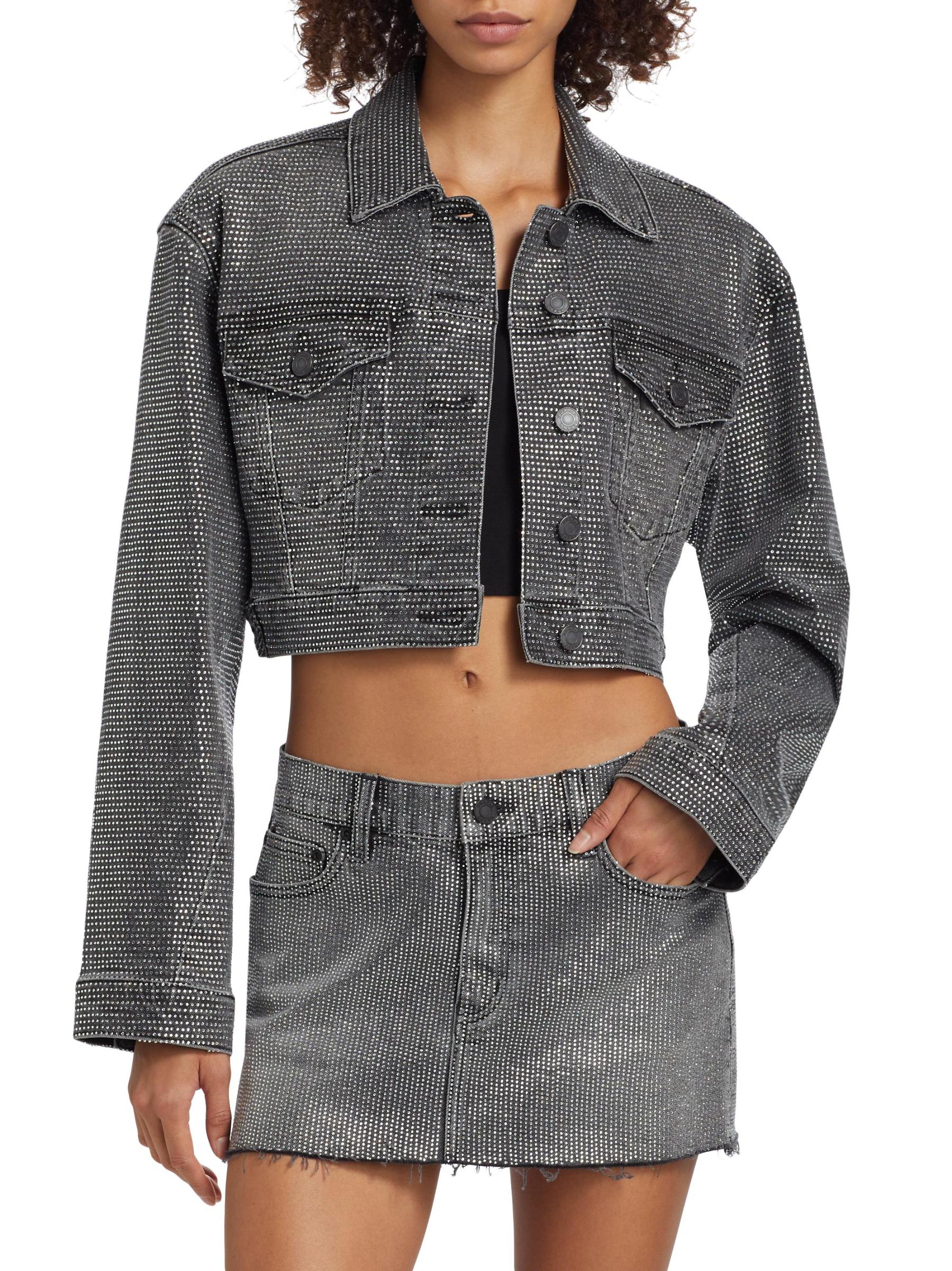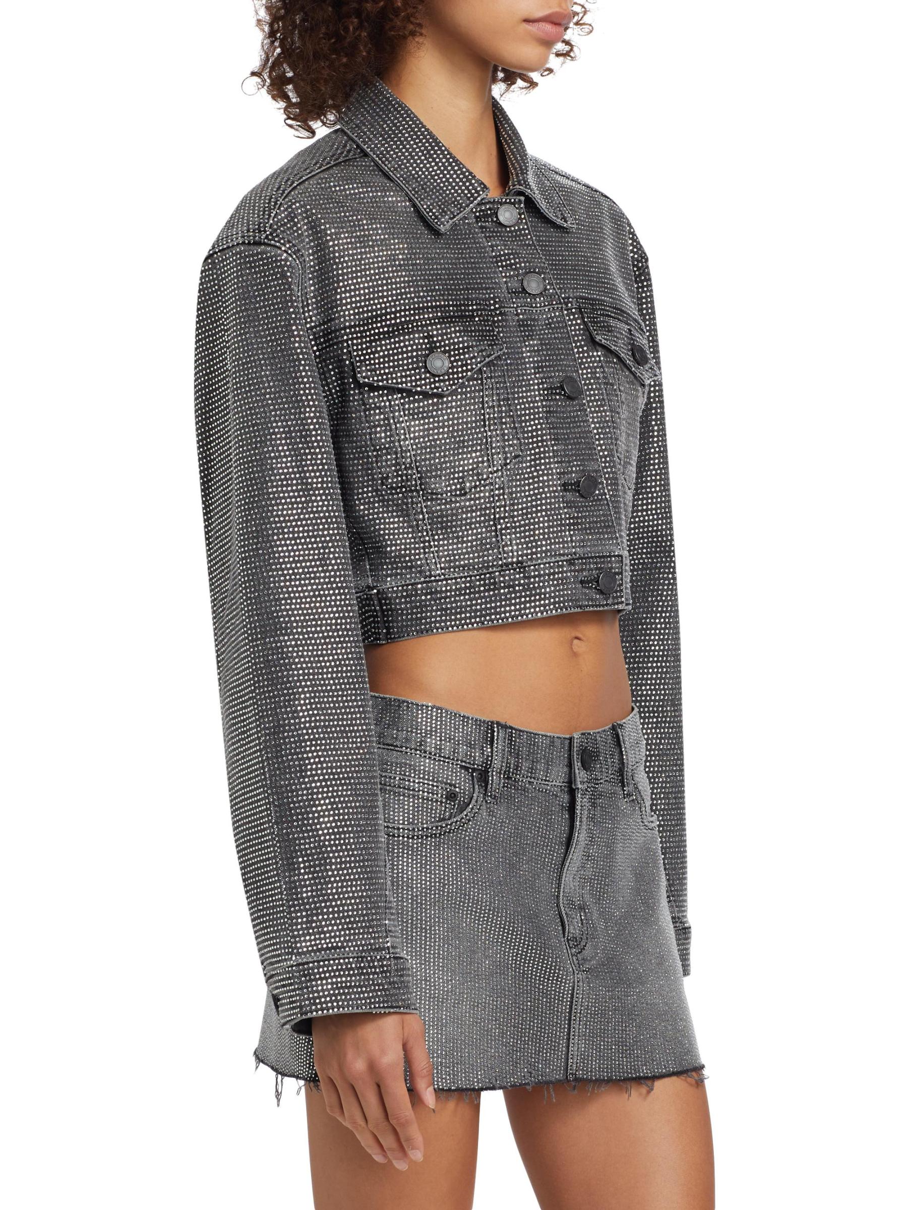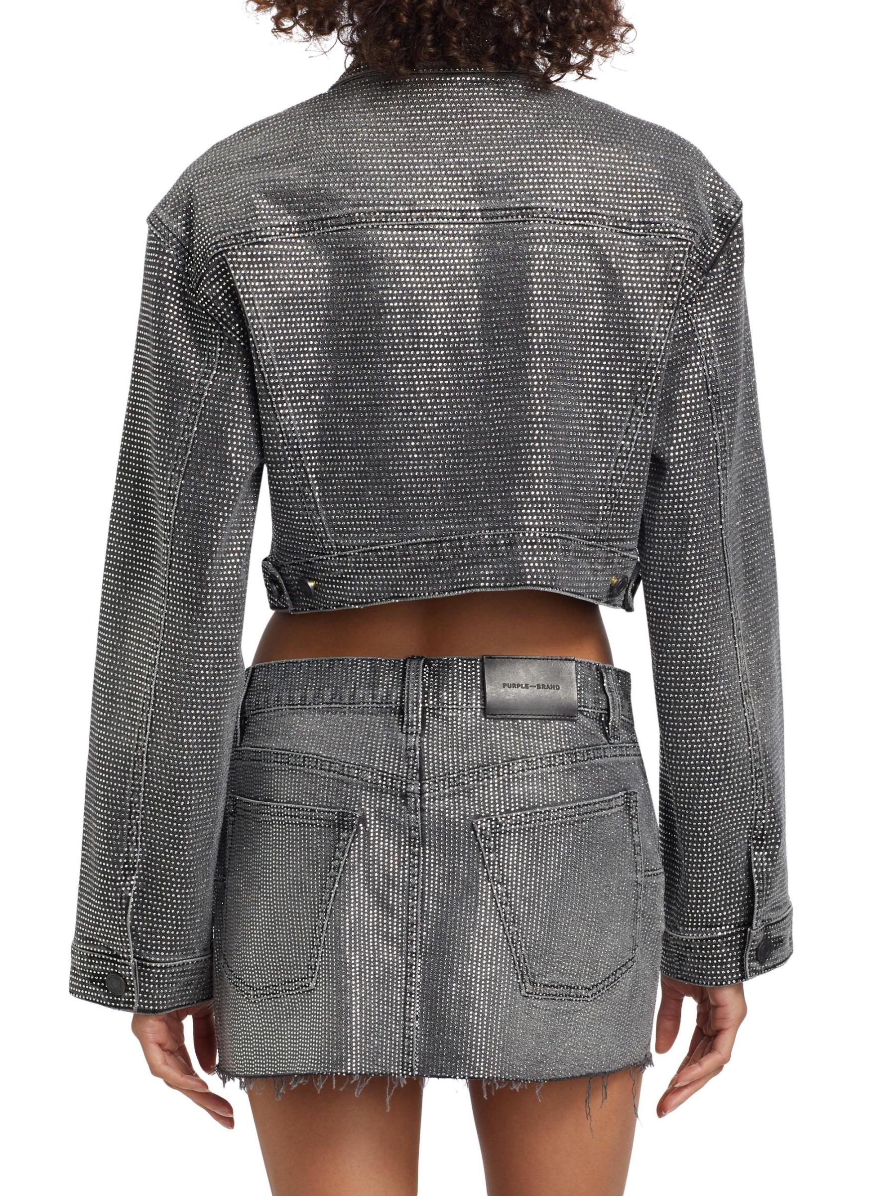 تتميز سترة الدنيم القصيرة من Purple Brand بدرزات الأكمام الملتوية والجيوب الأمامية العملية مع أغطية الجيب. مزينة بزخارف كريستالية تضيف لمسة من الأناقة إلى هذا المظهر.