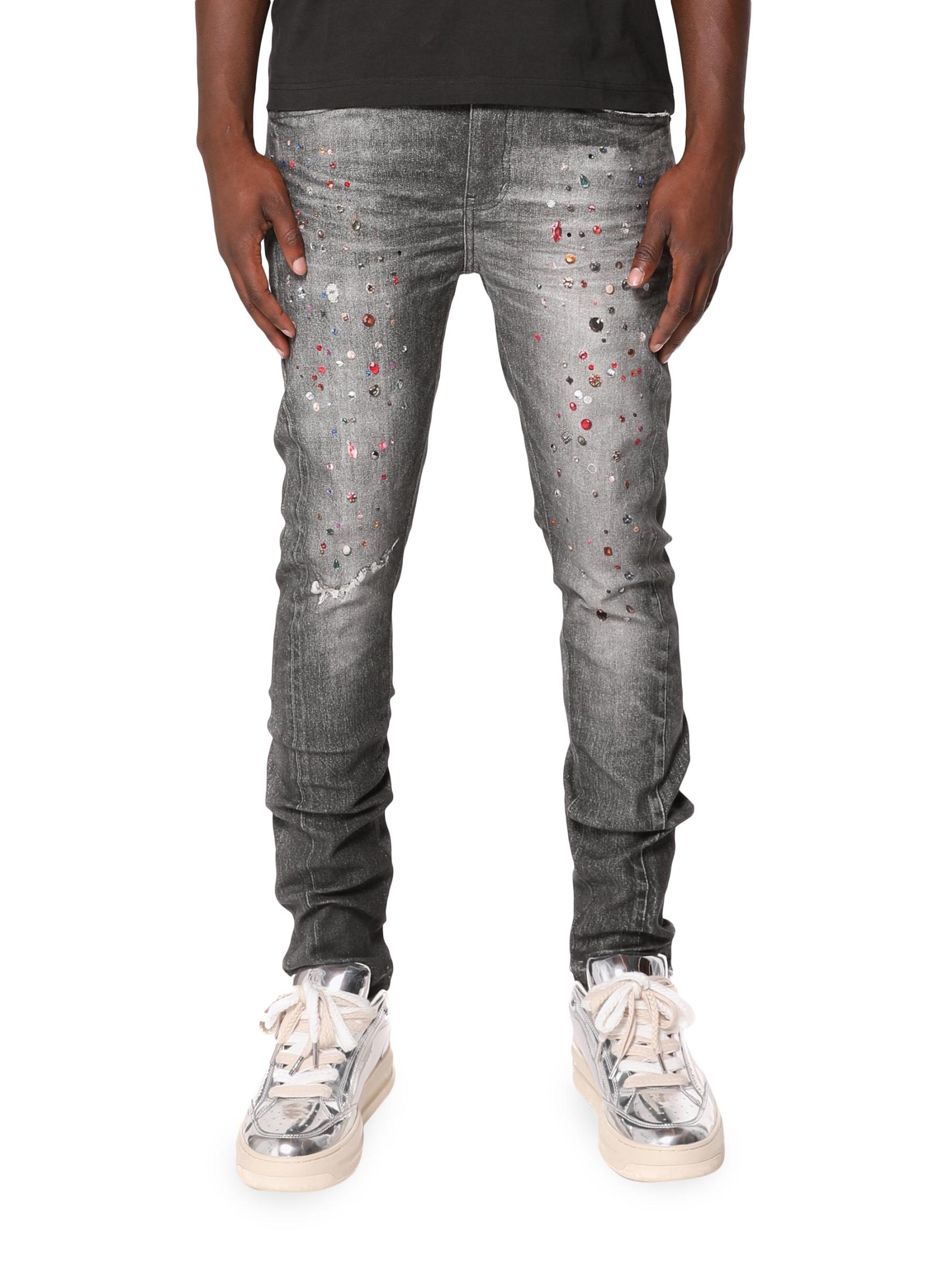 صُمم بنطال جينز Purple Brand من الدنيم المطاطي الممزق بتصميم متوسط الارتفاع ومزين بالكريستال. تصميم تقليدي بخمسة جيوب يكمل هذا الزوج النحيف.
