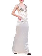 يتميز هذا الفستان الطويل من AKOK Anamika Khanna برقبة منسدلة وفتحة أمامية وتفاصيل مغرفة، وكل ذلك يبرز بتطريز الدانتيل الرقيق على طول خط العنق.كاولنك بدون أكمام فتحة عند الصدّار أحزمة ظهر متقاطعة تسحب حرير بنسبة 100% تنظيف جاف مستوردة