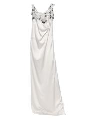 يتميز هذا الفستان الطويل من AKOK Anamika Khanna برقبة منسدلة وفتحة أمامية وتفاصيل مغرفة، وكل ذلك يبرز بتطريز الدانتيل الرقيق على طول خط العنق.