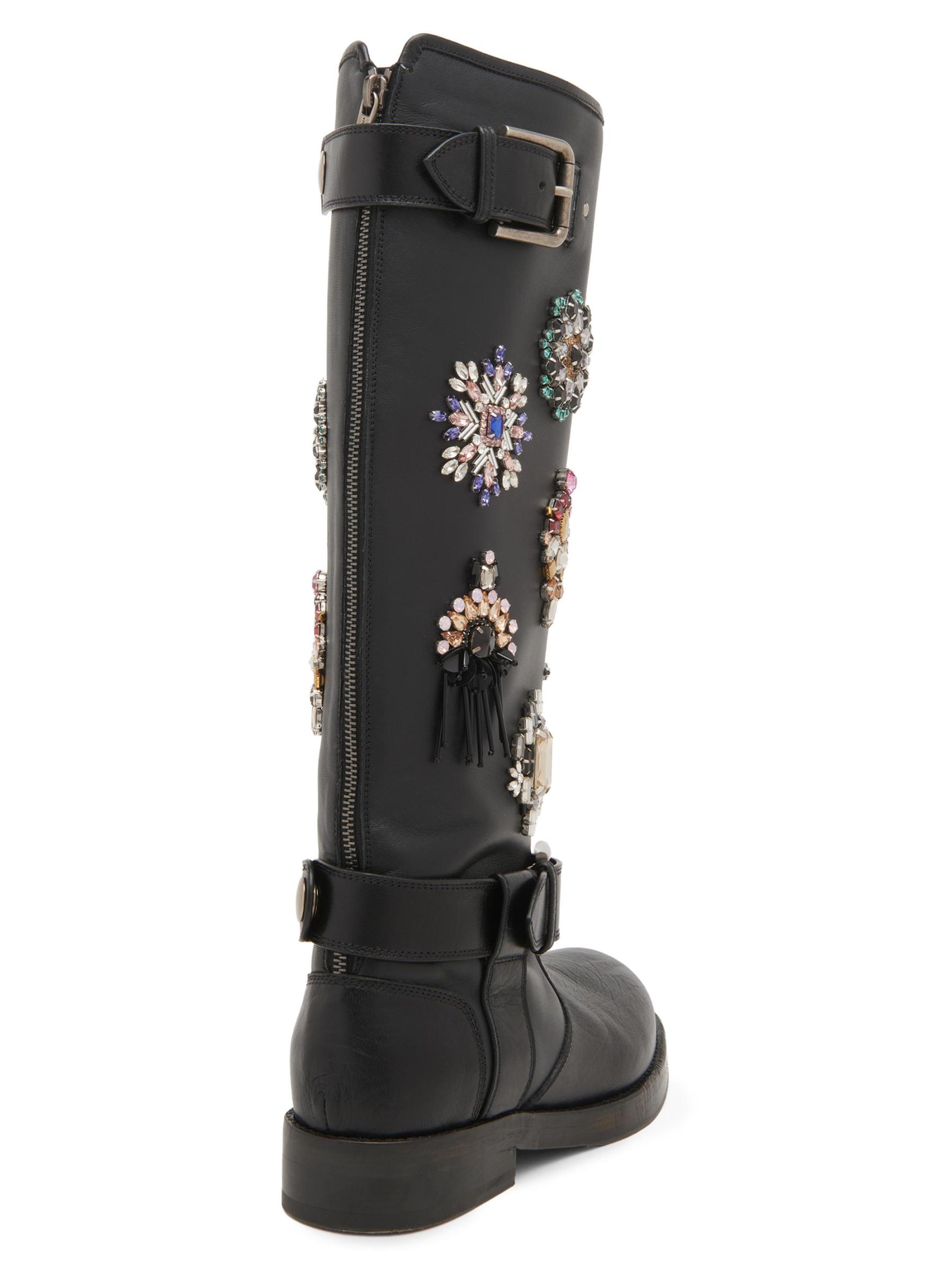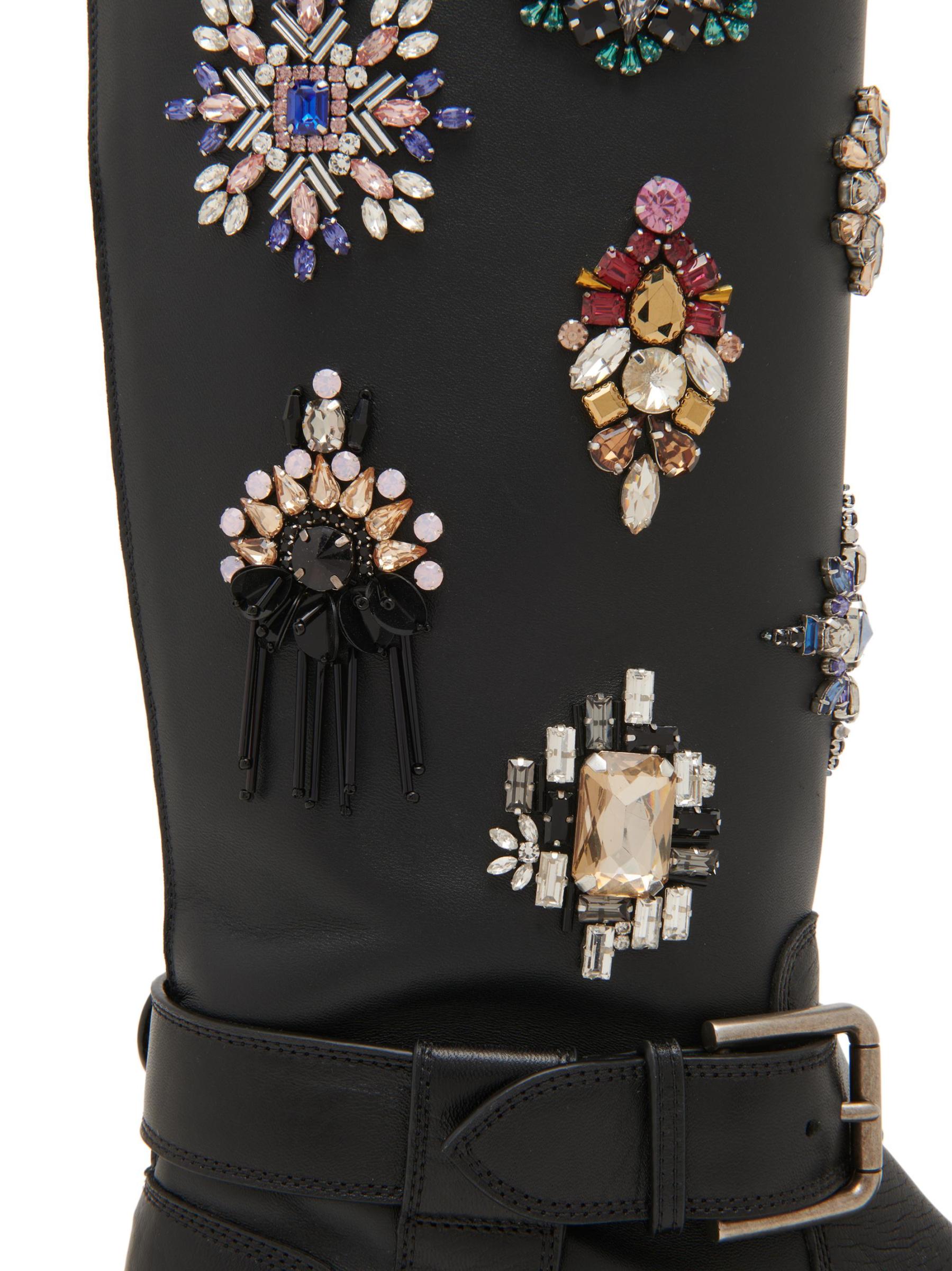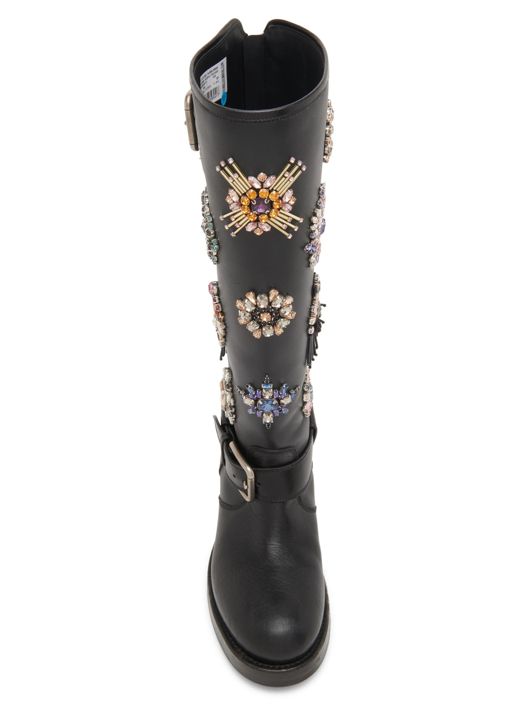 يتميز هذا الحذاء الذي يصل إلى الركبة من Dolce&Gabbana بزخارف مزخرفة إلى جانب سحّاب خلفي وإبزيم مزدوج.