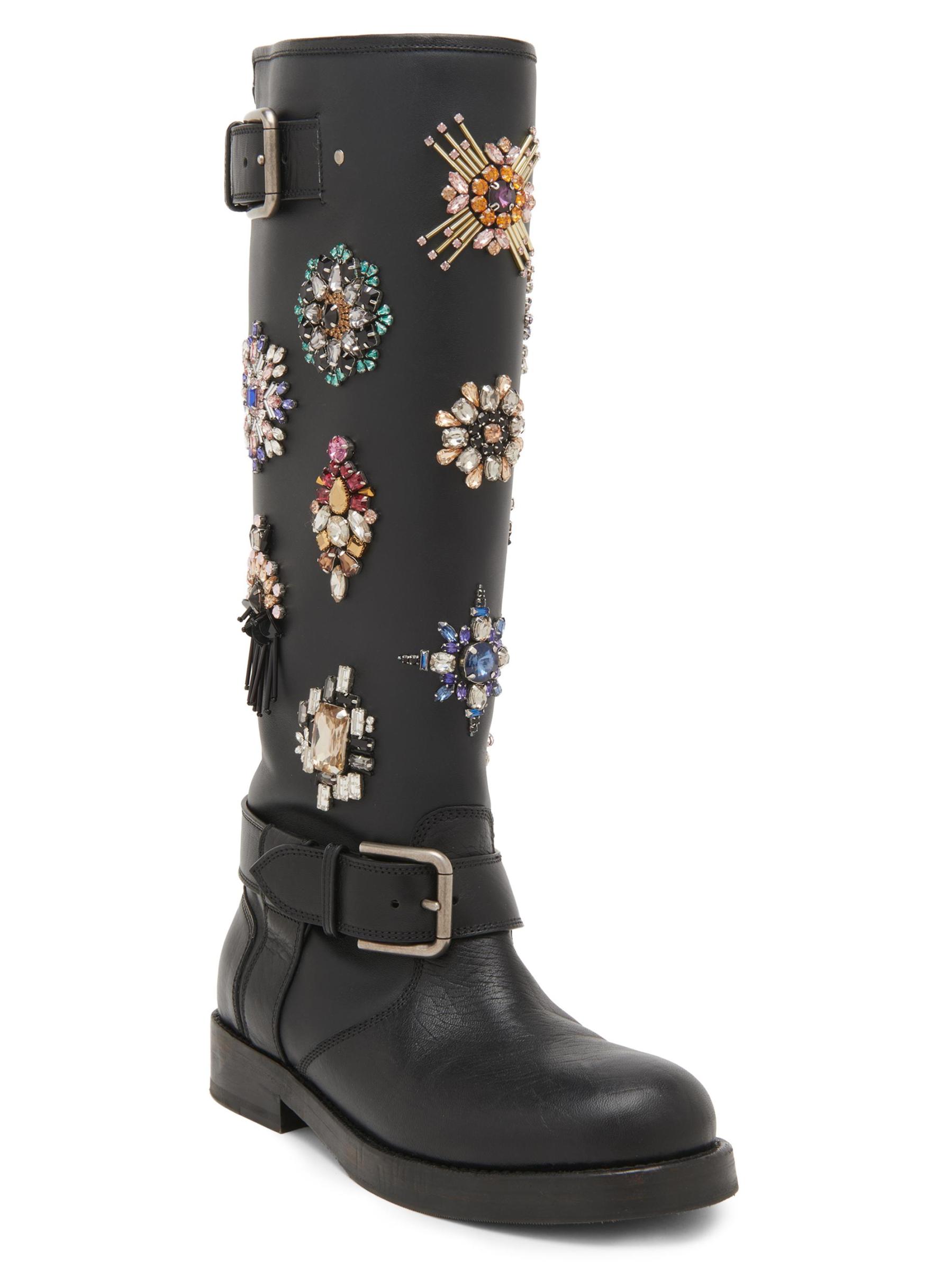 يتميز هذا الحذاء الذي يصل إلى الركبة من Dolce&Gabbana بزخارف مزخرفة إلى جانب سحّاب خلفي وإبزيم مزدوج.إصبع مستدير إغلاق بسحّاب خلفي إغلاق بمشبك الجزء العلوي مصنوع من الجلد والقماش والنحاس/الزجاج/الراتنج صُنع في إيطاليا