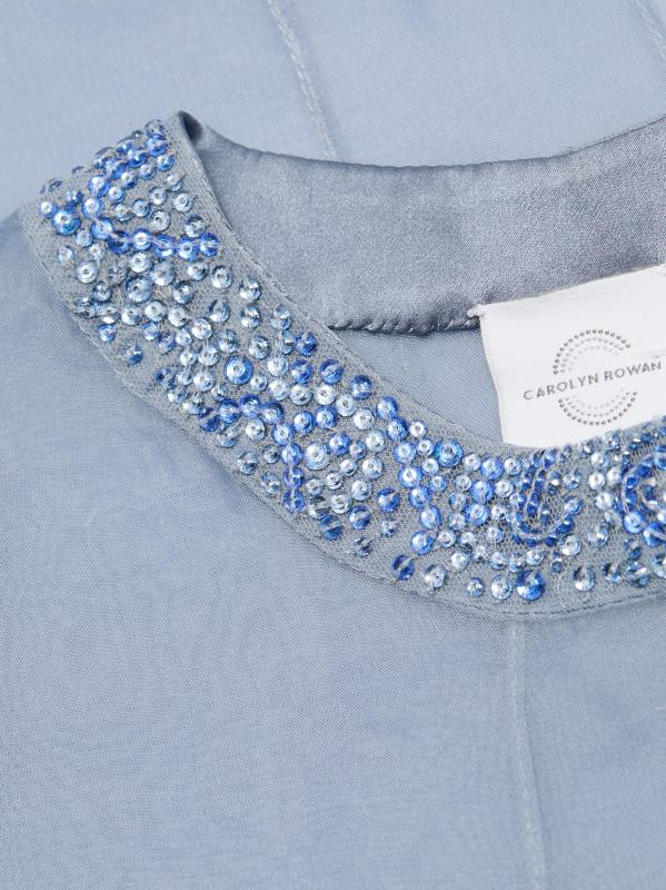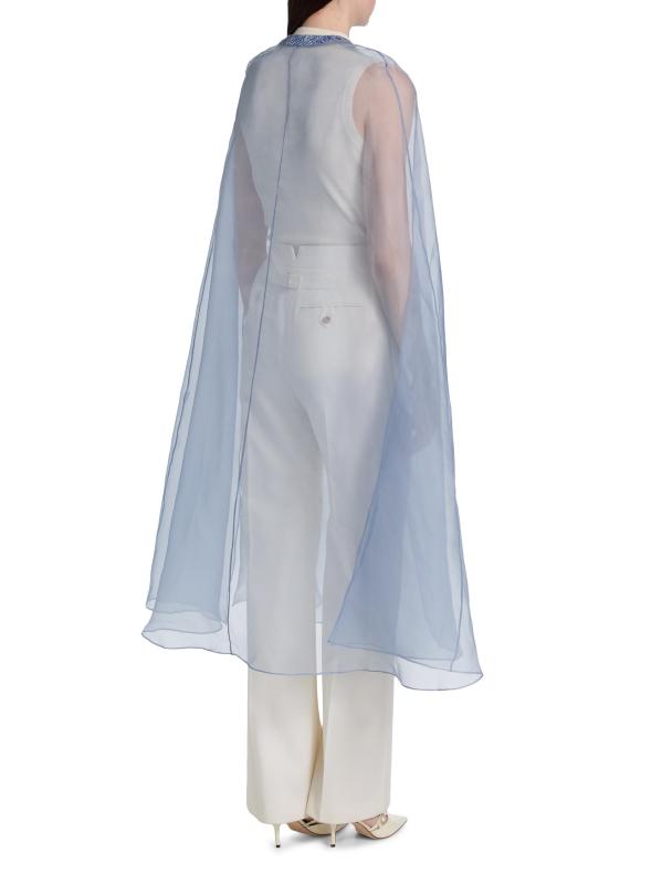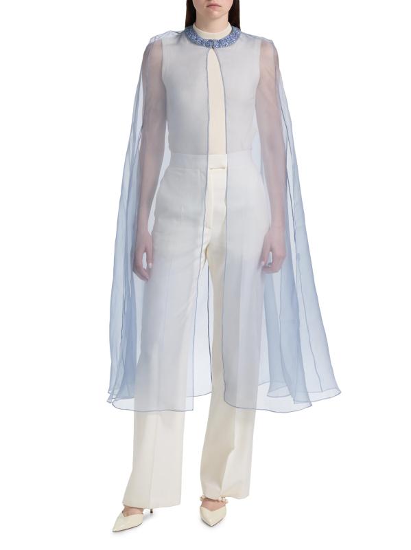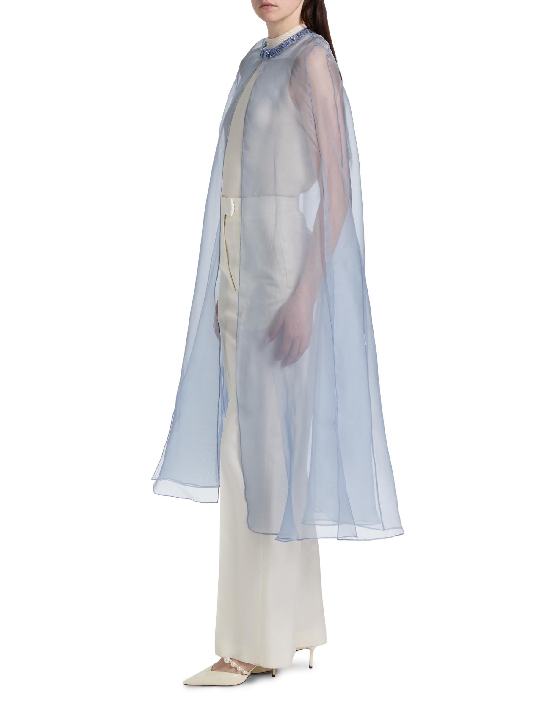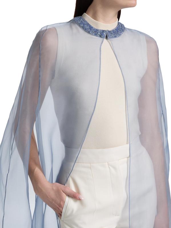 يتميز هذا الكاب الحريري المصنوع من الأورجانزا بياقة مطرزة لإضفاء لمسة من الأناقة. مصنوع من الحرير، ويوفر ملمسًا خفيفًا وفاخرًا.