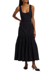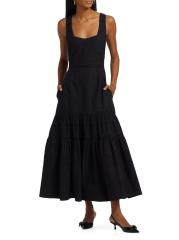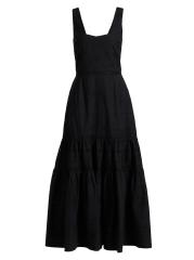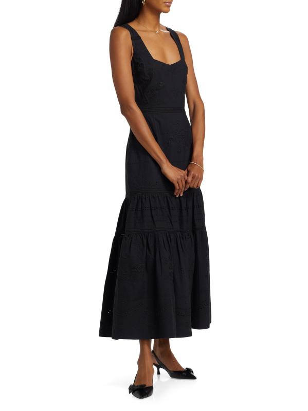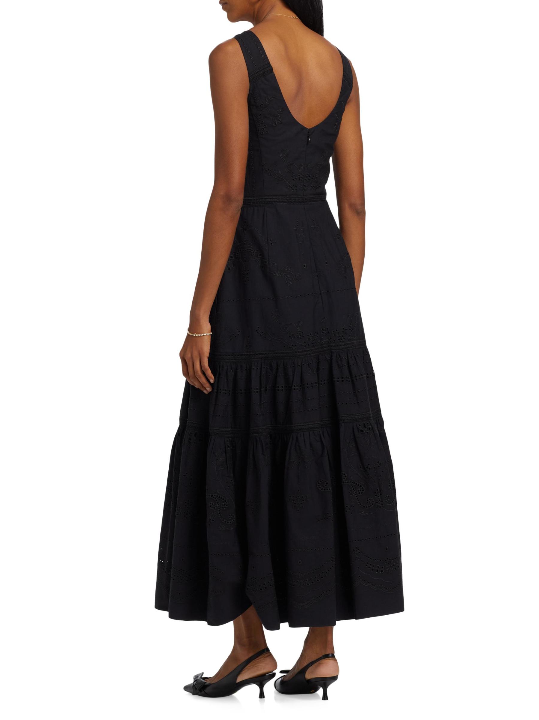 فستان ماكسي متعدد الطبقات بدون أكمام من القطن المطرز