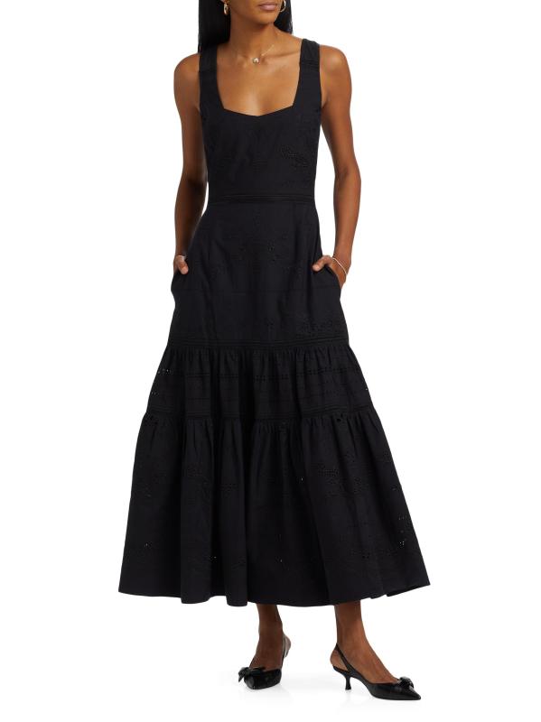 هذا الفستان الطويل المتدرج من Marchesa Rosa منسوج من القطن المطرّز ومزيّن بتفاصيل شبكية منسوجة.رقبة مربعة بدون أكمام إغلاق بسحّاب خلفي قطن بنسبة 100% تنظيف جاف مستوردة