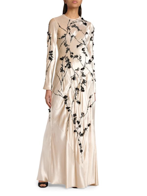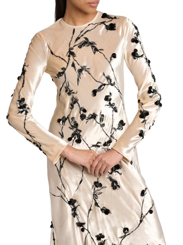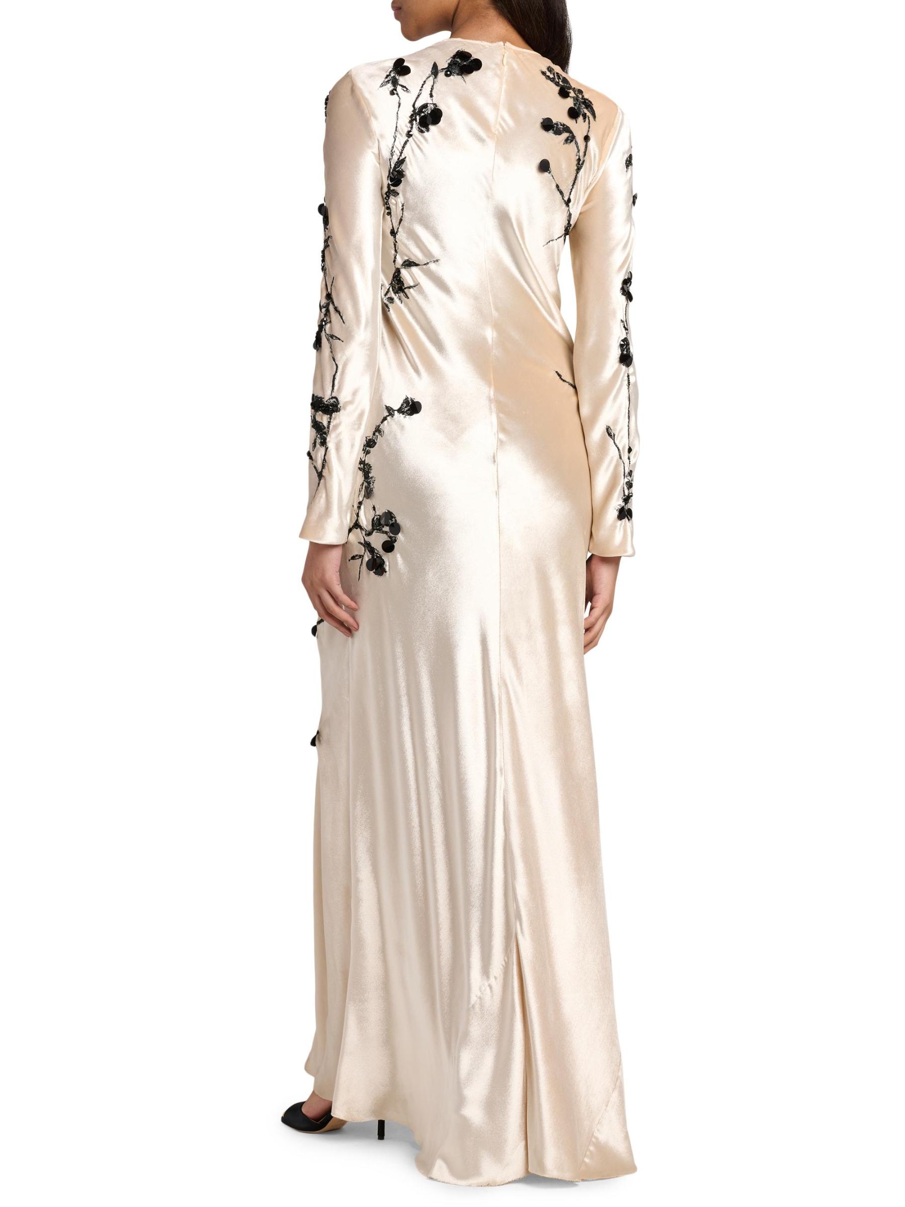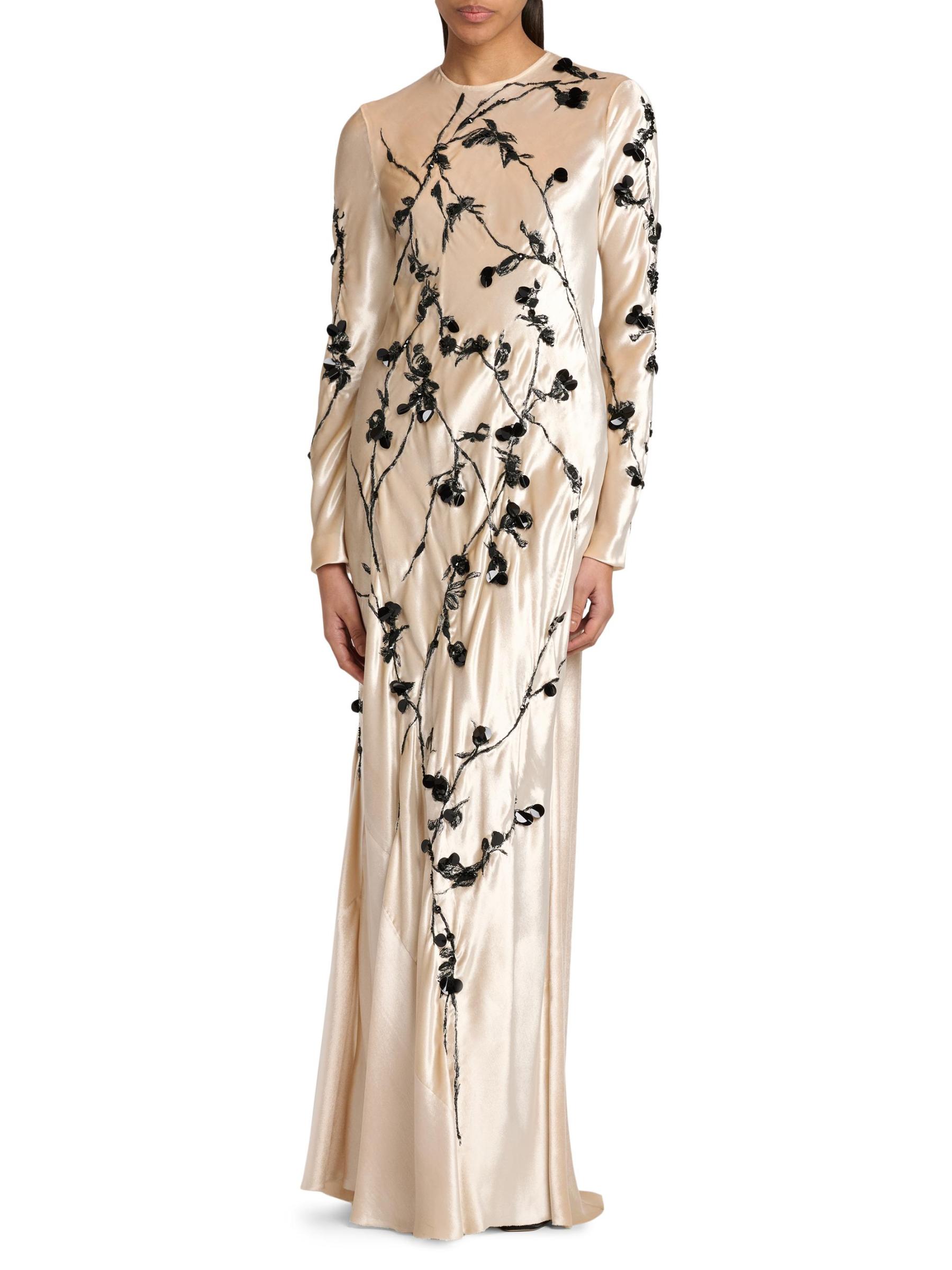 هذا الفستان الطويل من Alberta Ferretti مصنوع من قماش خفيف الوزن مع تطريز متباين ويتميز برقبة مستديرة وتصميم مطرز واسع.