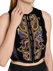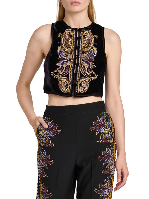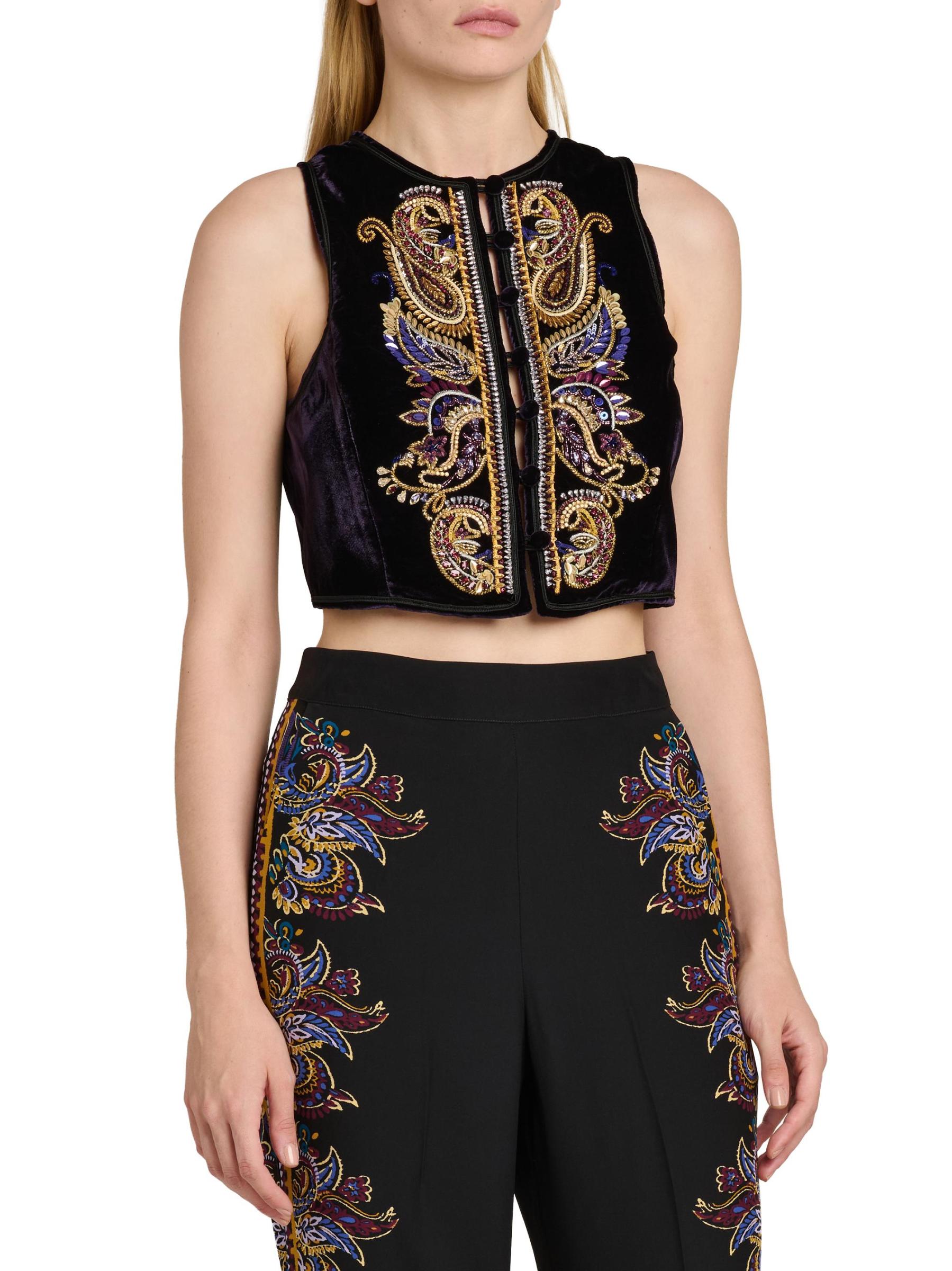 سترة بيزلي قصيرة مطرزة