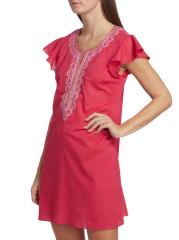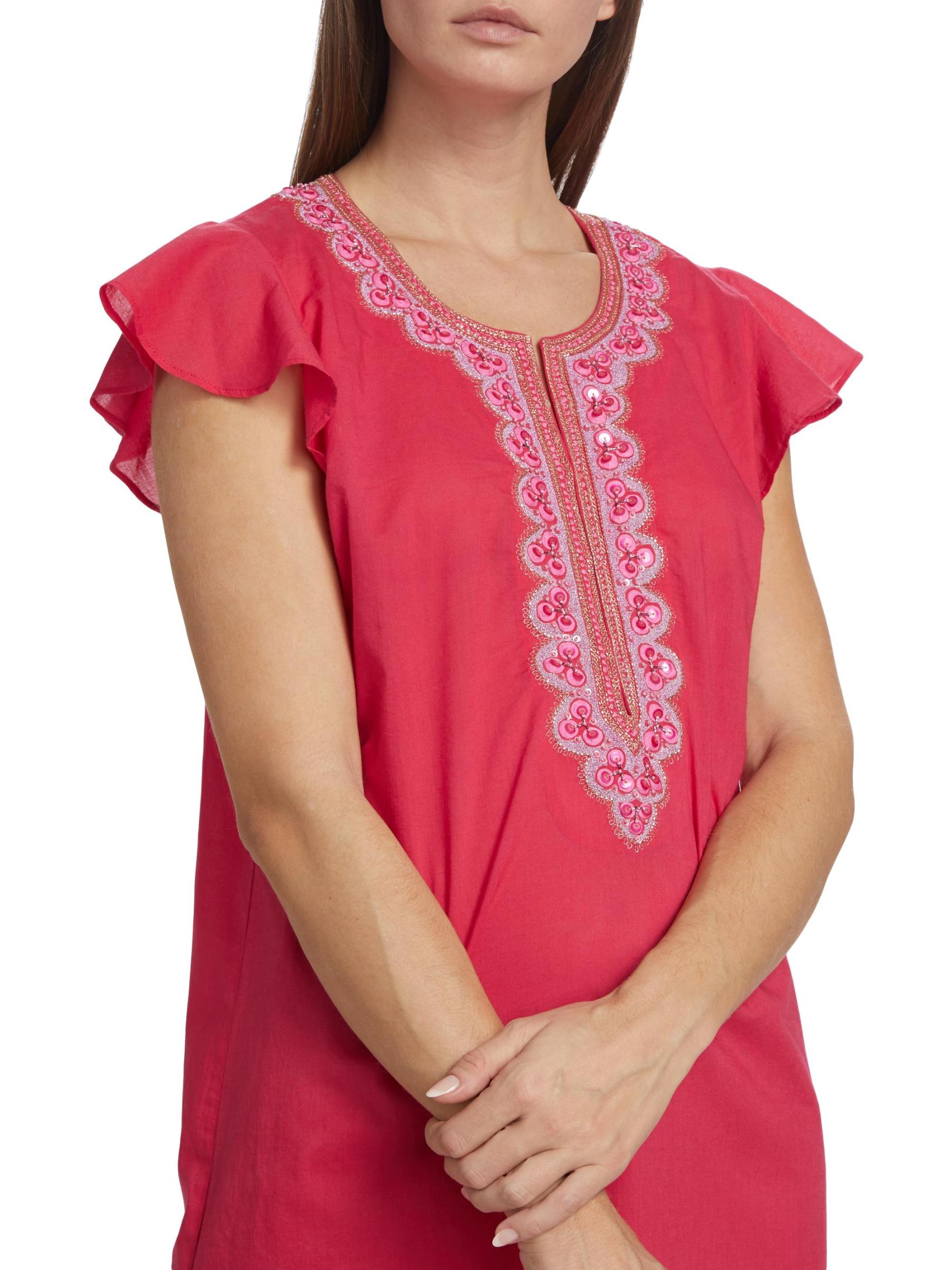 فستان تونك كلاسيكي مطرّز من كاليبسو مصنوع من القطن مع أكمام رفرفة مغرية.رقبة منقسمة أكمام قصيرة نمط بلوفر قطن بنسبة 100% تنظيف جاف مستوردة