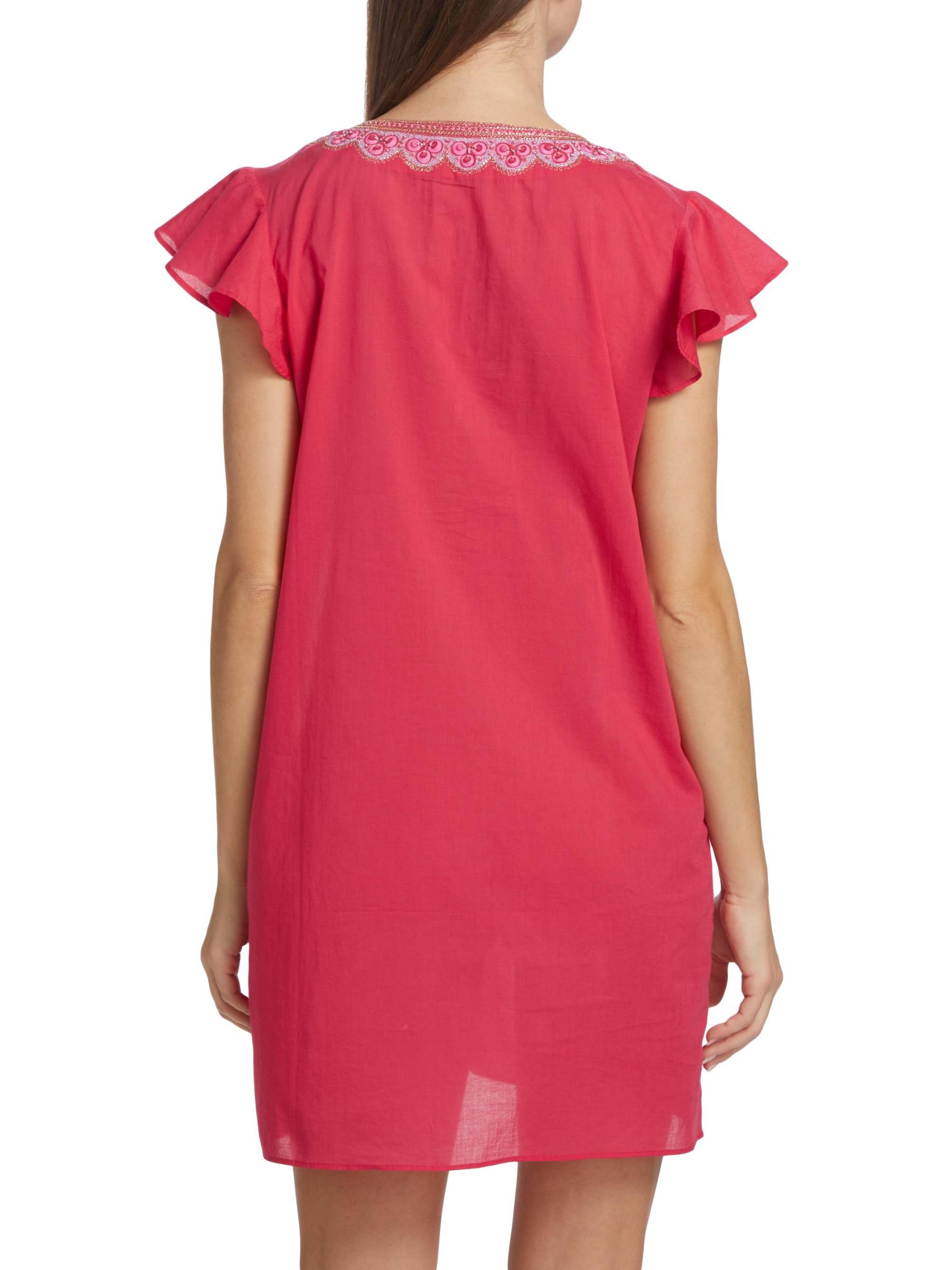 فستان تونك كلاسيكي مطرّز من كاليبسو مصنوع من القطن مع أكمام رفرفة مغرية.