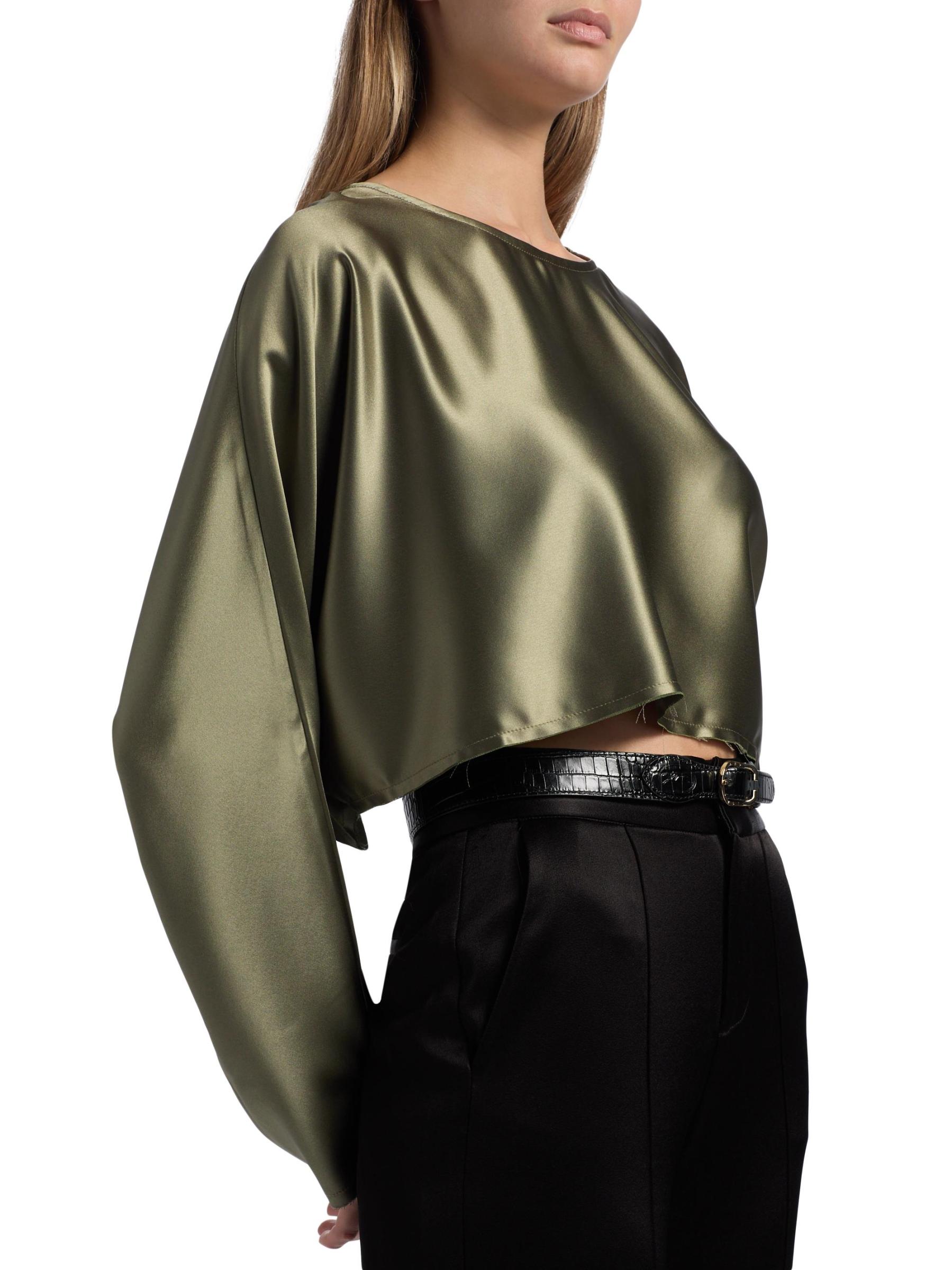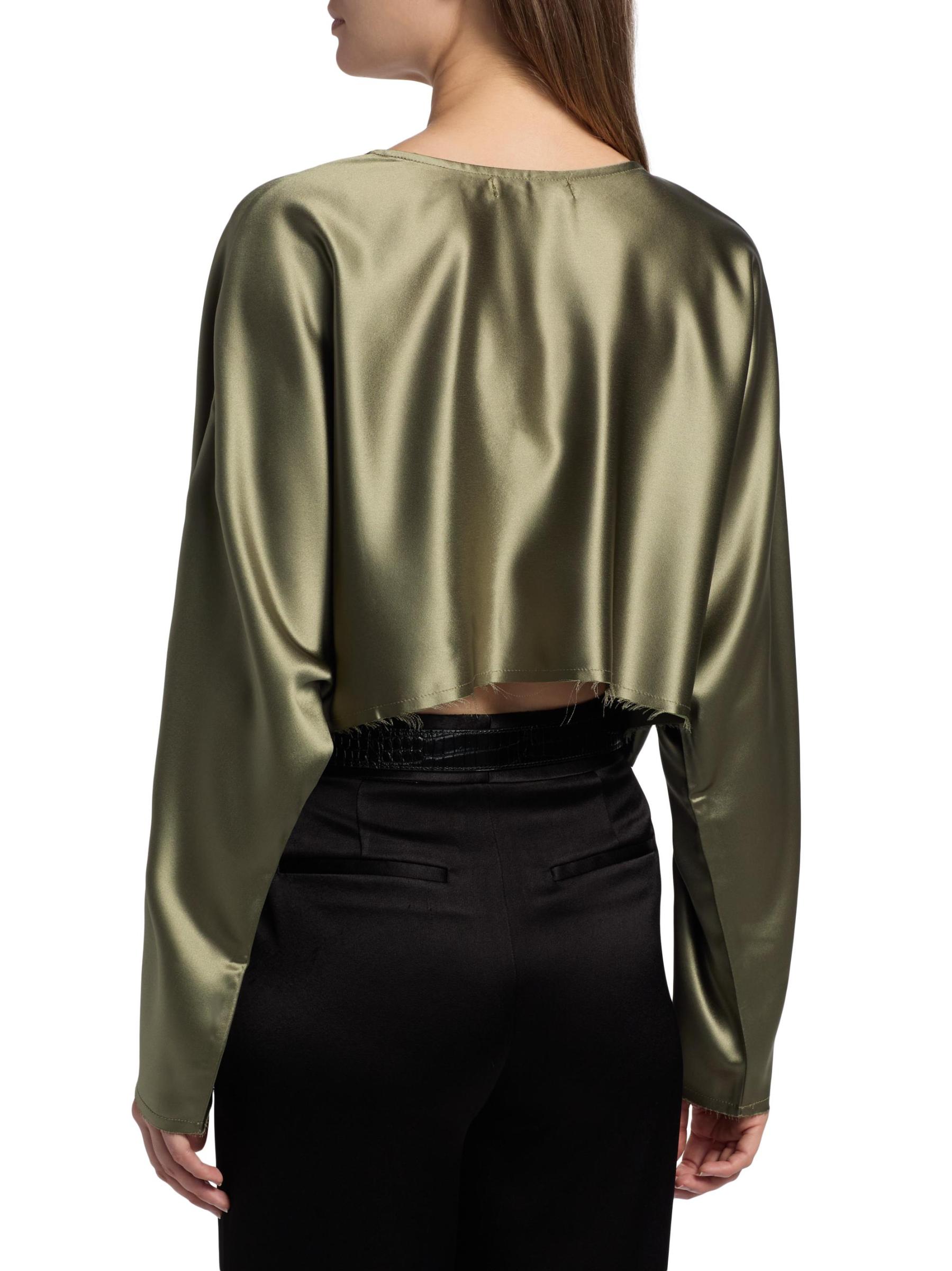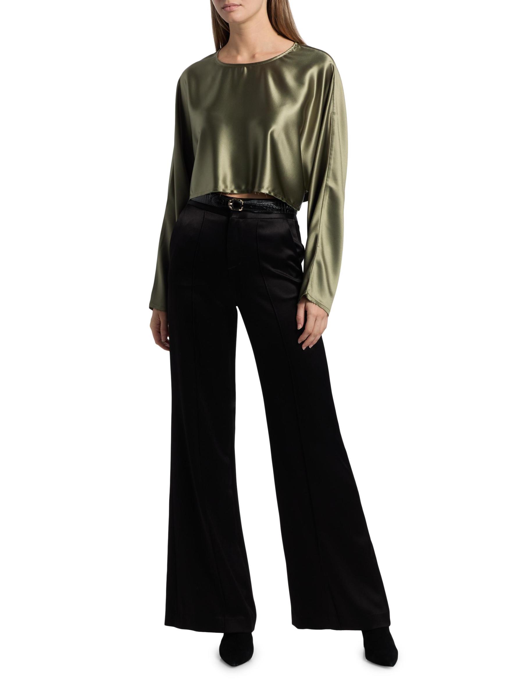 تتميّز بلوزة إيميليا من Nonchalant Label المصنوعة من الساتان الناعم بتصميم قصير وحاشية بحواف غير لامعة.