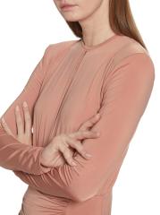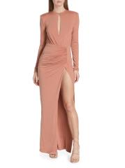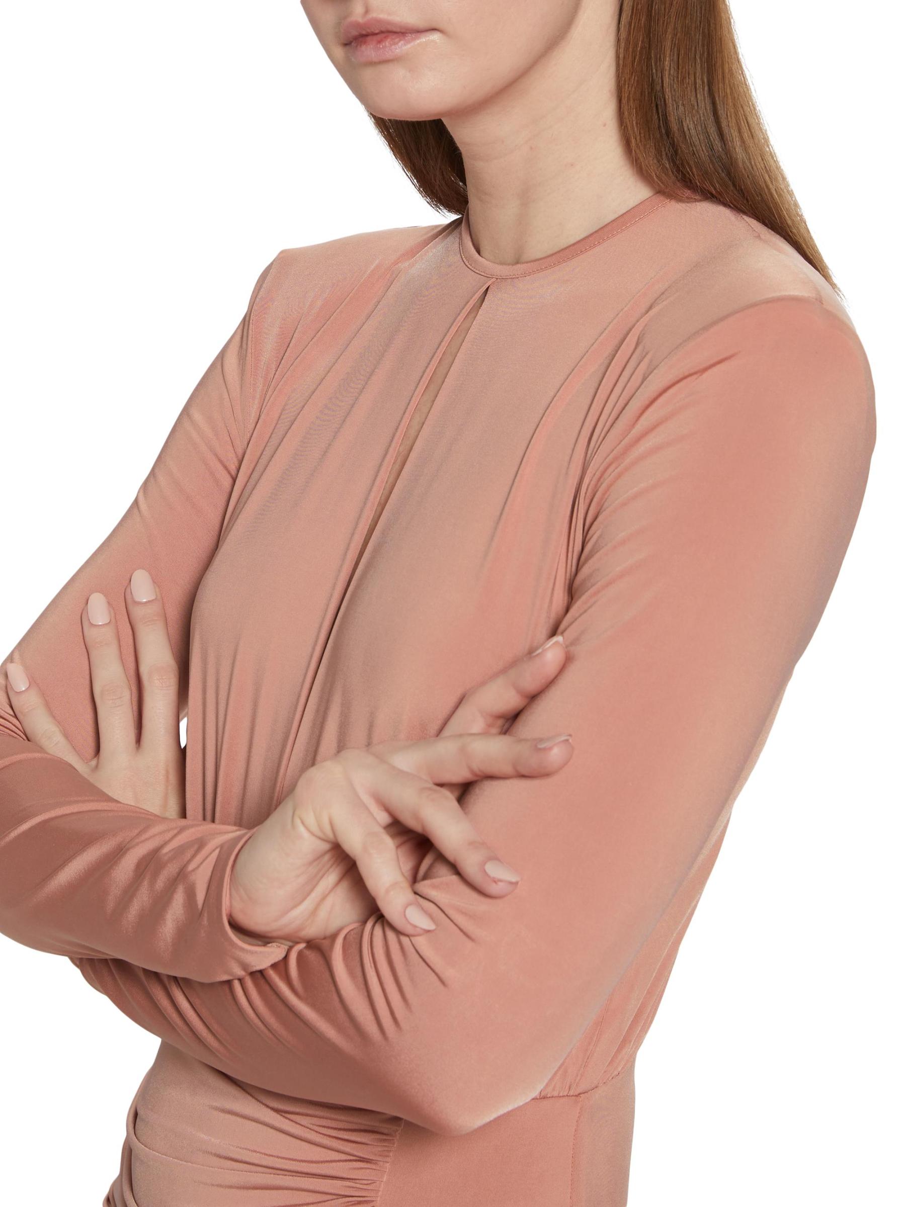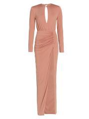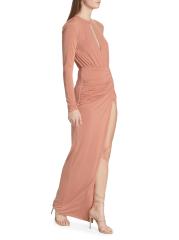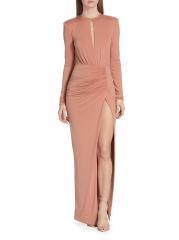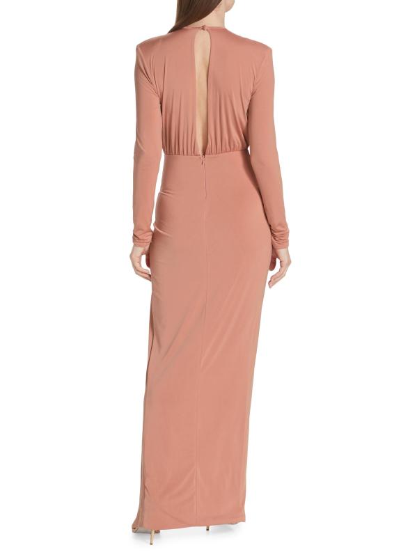 حصري. يتميز فستان Emmit من مجموعة MICHAEL COSTELLO بتصميم جرسي منسدل مع شق بارز يصل إلى الفخذ. يُكمل المظهر صدّار بأكمام طويلة مع فتحات ثقب المفتاح في الأمام والخلف.