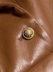 يتميز فستان Emmy fit and flare الصغير المصنوع من الجلد الصناعي من Alice + Olivia بياقة مدببة ورقبة ضيقة وأزرار مزخرفة باللون الذهبي.