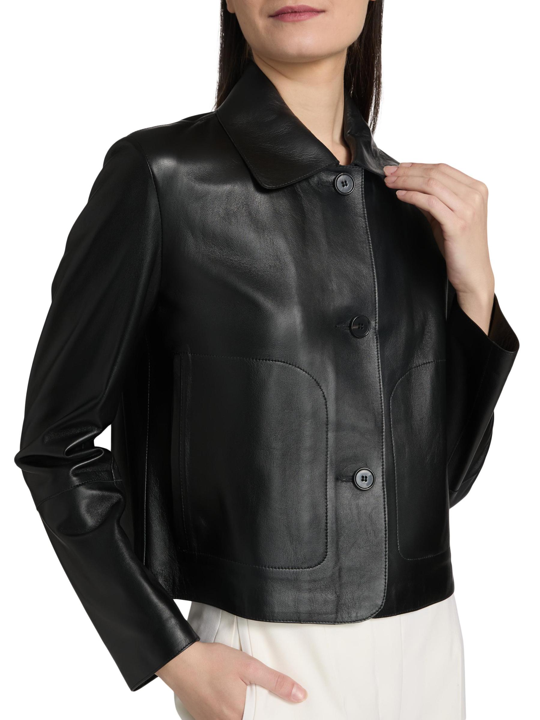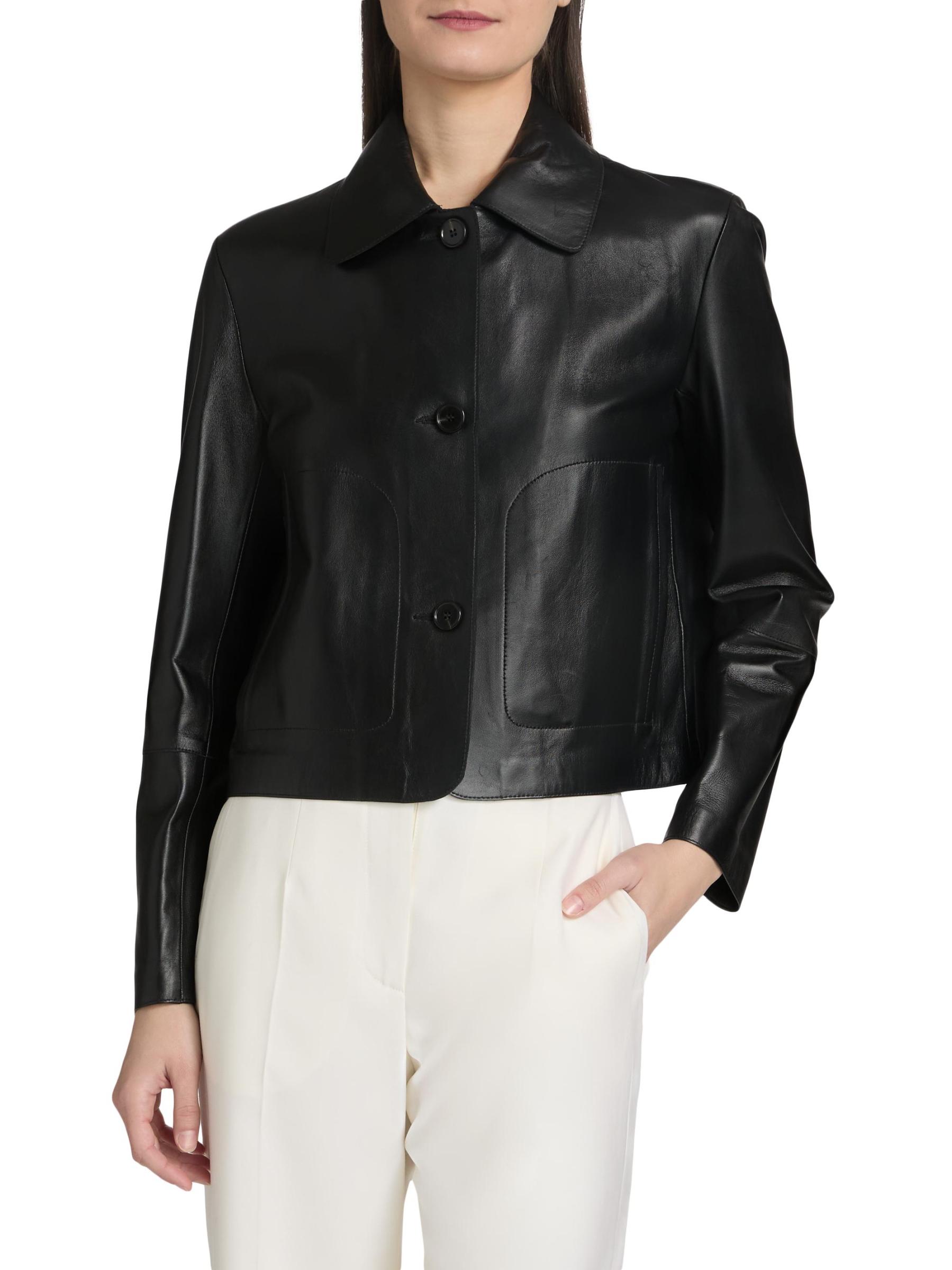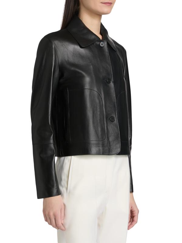 جاكيت Nos Emy من Arma مصنوع من الجلد ومصمم بياقة نظيفة ومفروشة ومقاس عادي.