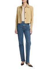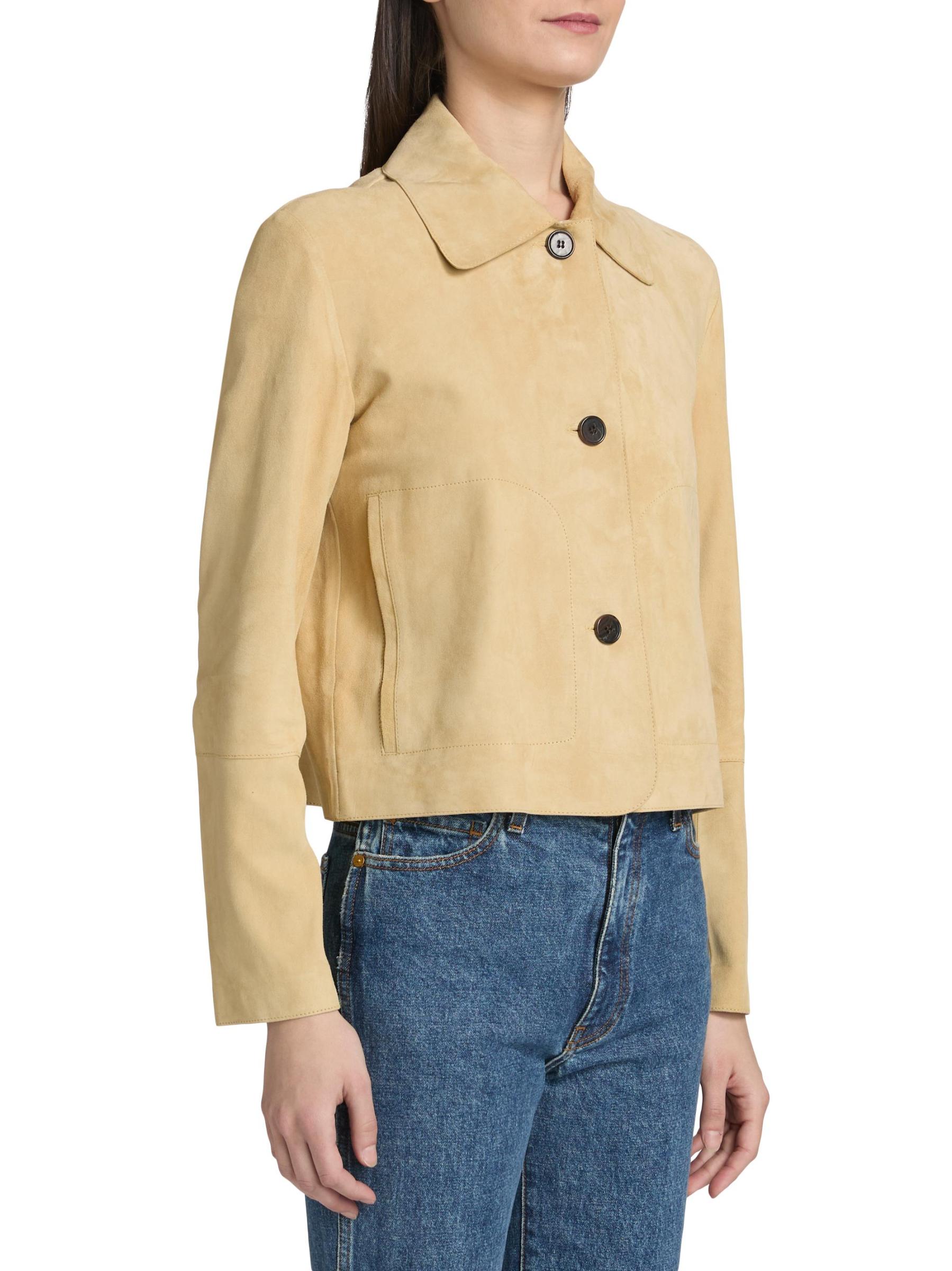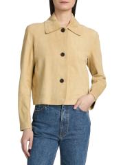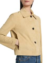 تتميّز جاكيت إيمي من آرما، المصنوع من الجلد المدبوغ المرن، بياقة نظيفة ومزيّنة بمقاس عادي للارتداء اليومي.