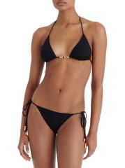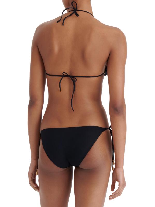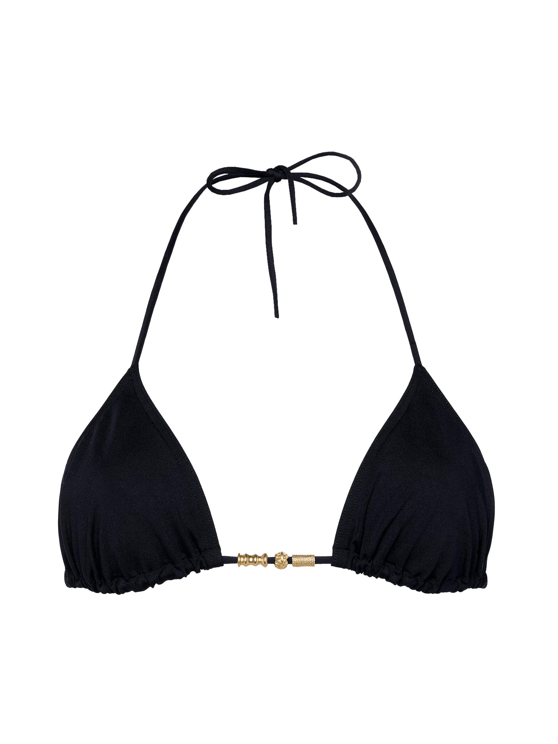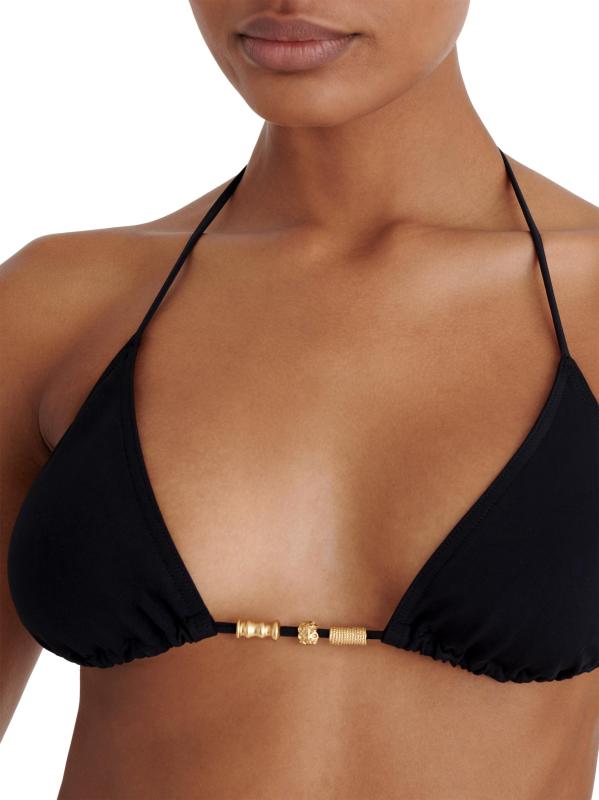 يتميز الجزء العلوي من البيكيني Ephemère المثلث من ERES بزخارفه الراقية: حبات ذهبية غير منتظمة يبدو أنها تعرضت للعوامل الجوية بفعل الأمواج.