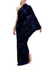 يتميز فستان Erica بكتف واحد من تصميم Silvia Techerassi بنمط مخطط مخملي وقطع معدنية ذهبية عند الرقبة المصممة على شكل قلادة وتصميم منسدل بأكمام واحدة.