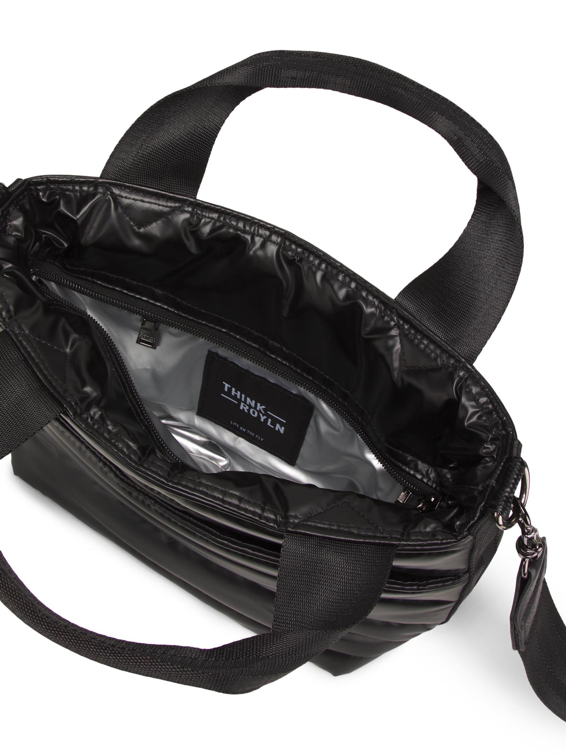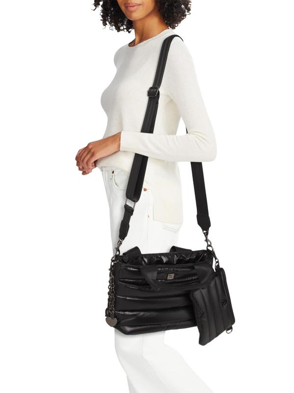 تتميز حقيبة Escapade المبطنة بحزام يلتف حول الجسم من Think Royln بسحرات قابلة للإزالة إلى جانب حقيبة قابلة للإزالة.