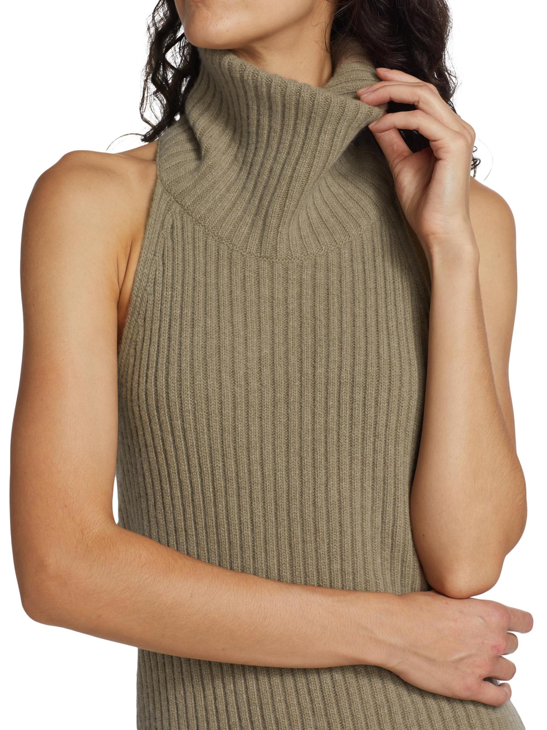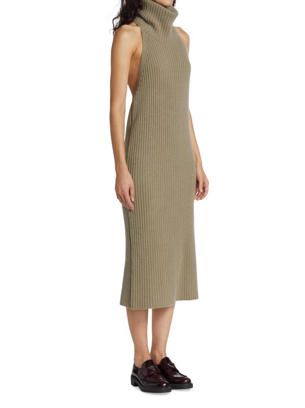 يتميّز فستان Estelle المصنوع من صوف الميرينو الفاخر والكشمير من Piece of White بياقة عالية مع فتحة ظهر مفتوحة. تم الانتهاء من هذه القطعة بشق خلفي.ياقة مدورة على شكل هالتر بدون أكمام نمط بلوفر 70% من صوف المارينو فائق النعم/ 30% من الكشمير غسيل يدوي مستوردة