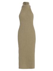 يتميّز فستان Estelle المصنوع من صوف الميرينو الفاخر والكشمير من Piece of White بياقة عالية مع فتحة ظهر مفتوحة. تم الانتهاء من هذه القطعة بشق خلفي.
