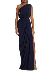 حصري. يتميّز فستان Eternity من مجموعة MICHAEL COSTELLO بتقويرة بكتف واحد وتفاصيل منسدلة.