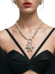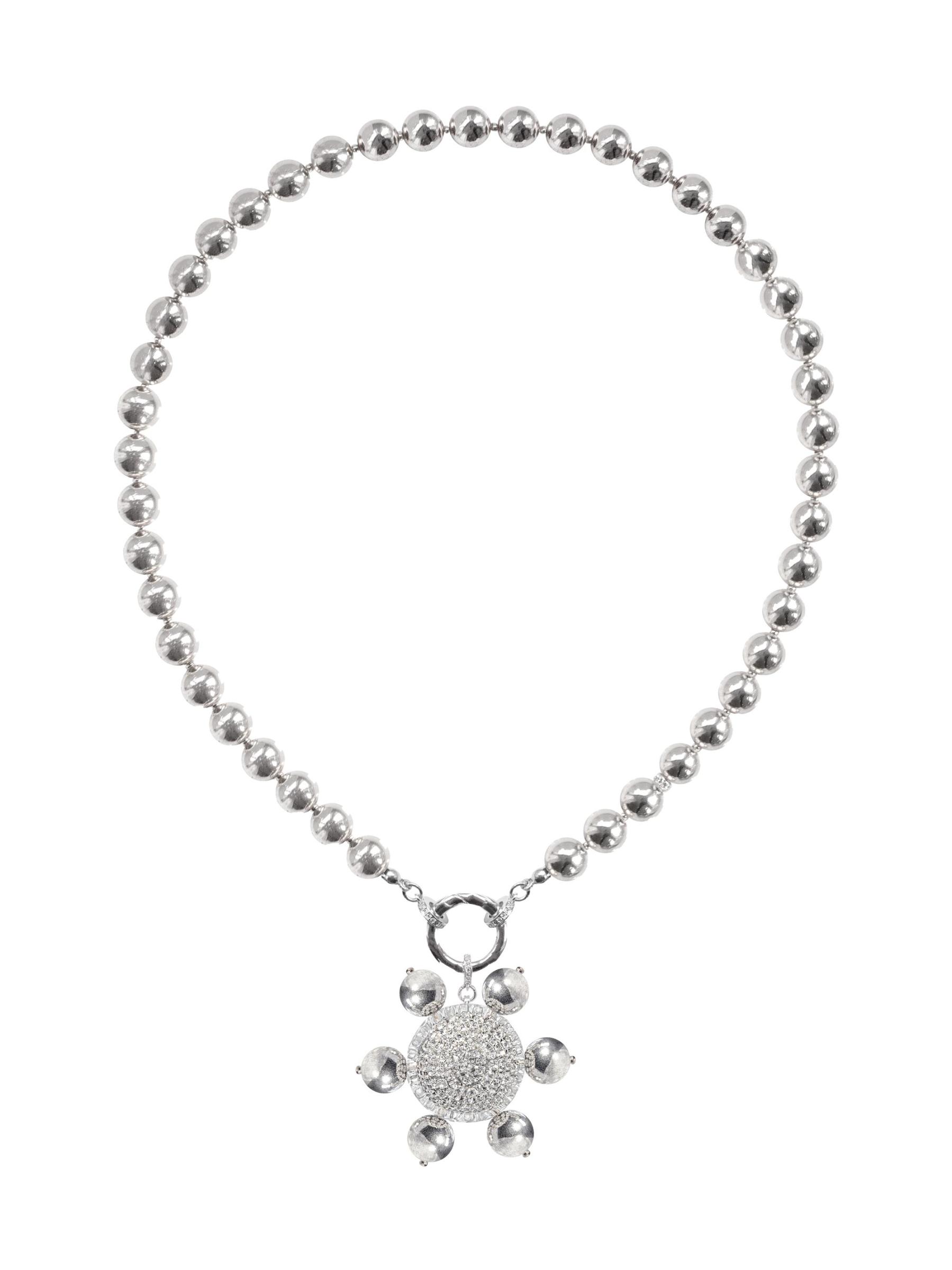من مجموعة Étoile. تتميّز قلادة جولي المذهلة من ساولي، المُزيّنة بخرز مصقول مطلي بالفضة، بقلادة نجمية مرصّعة بأحجار الراين المتلألئة.