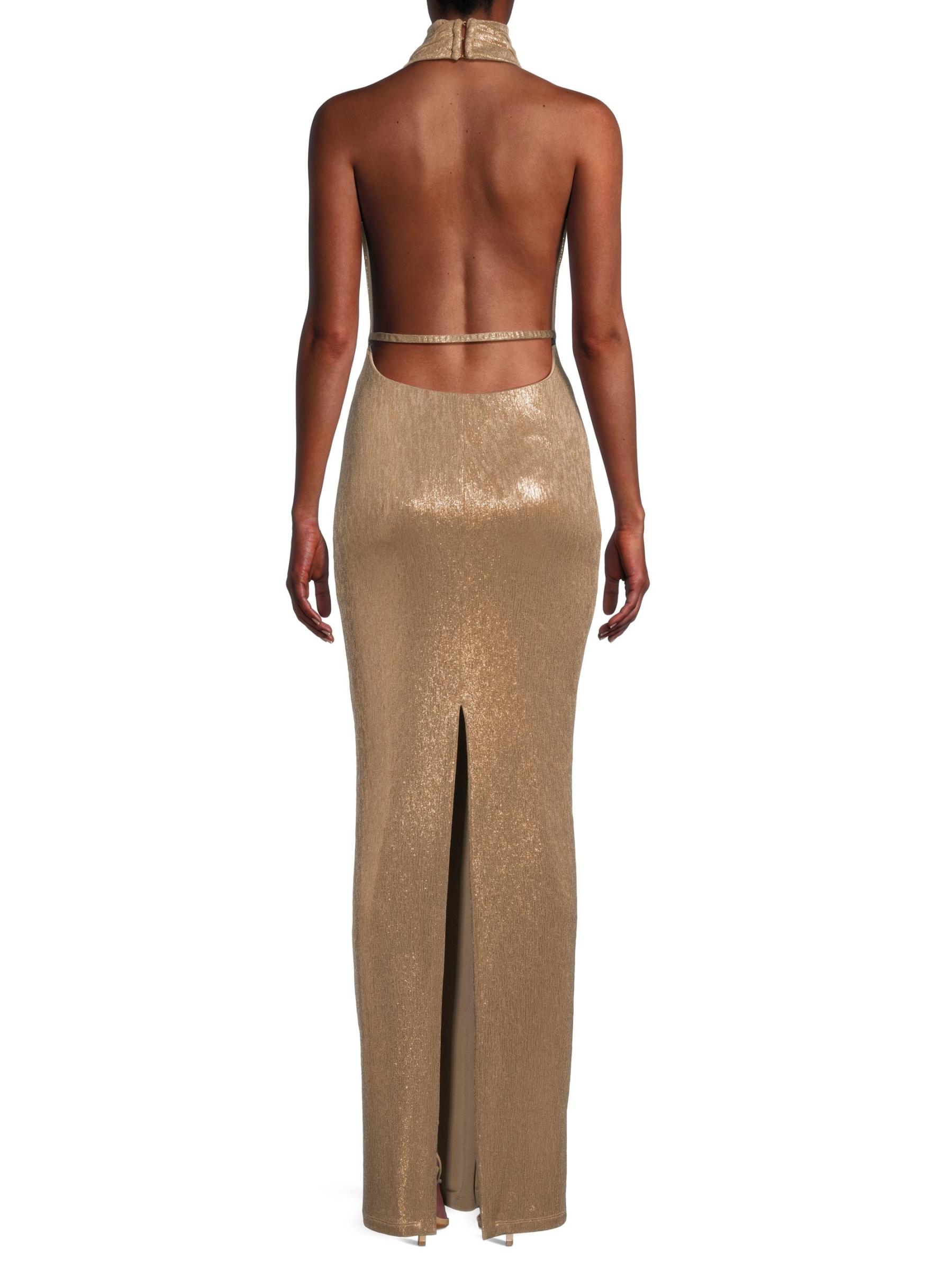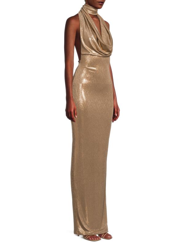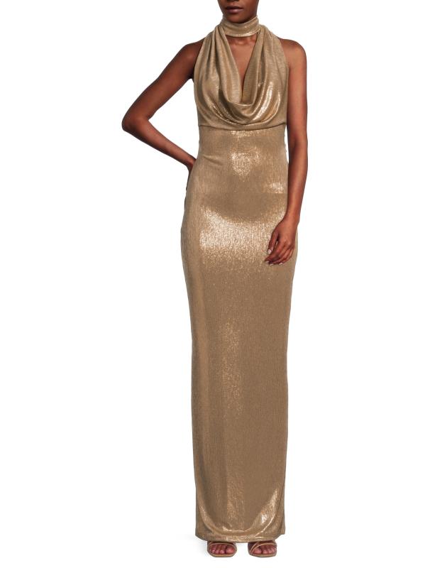 صُنع فستان Eulalia الطويل بلا أكمام من Black Halo من نسيج معدني ومصمّم برقبة على شكل قارب.