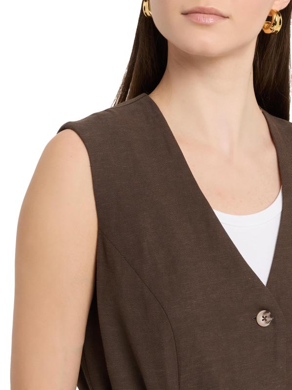 تم تصميم سترة Eva المصنوعة من مزيج الكتان من Faithfull the Brand بتصميم رقبة على شكل حرف V مستوحى من الملابس الرجالية وأربطة قابلة للتعديل حول الخصر.رقبة على شكل حرف V بدون أكمام خصر مربوط ذاتيًا جيوب ضيقة للخصر إغلاق بأزرار أمامية برومودال® رايون/فيسكوز/كتان البطانة: 100% بوليستر تنظيف جاف مستوردة