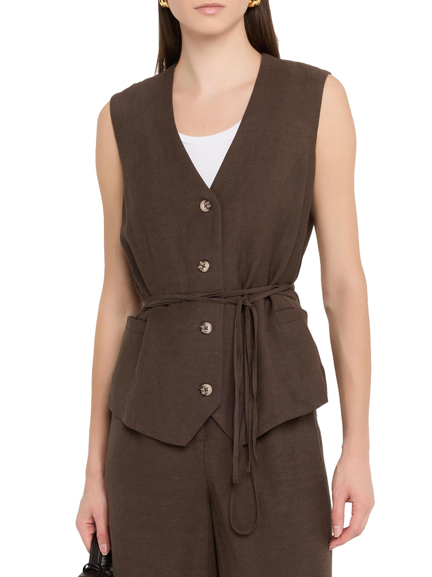 سترة إيفا من مزيج الكتان برباط على الخصر