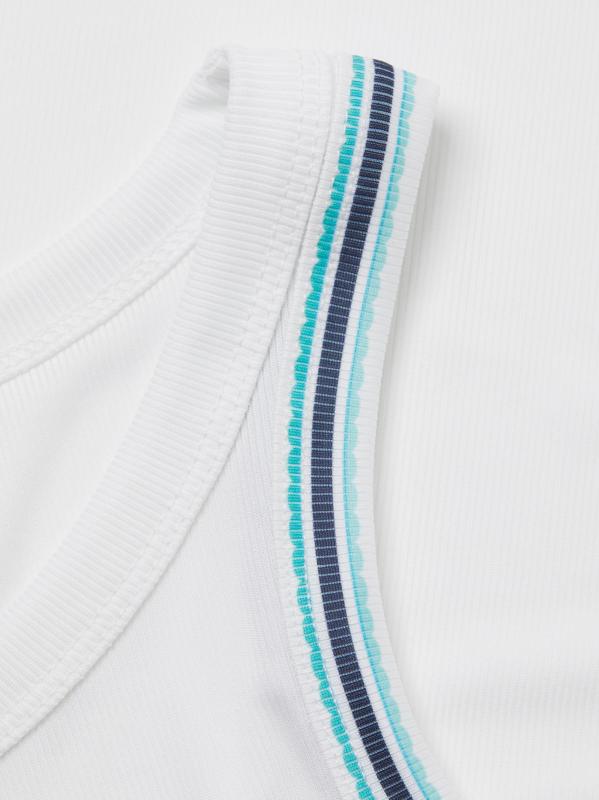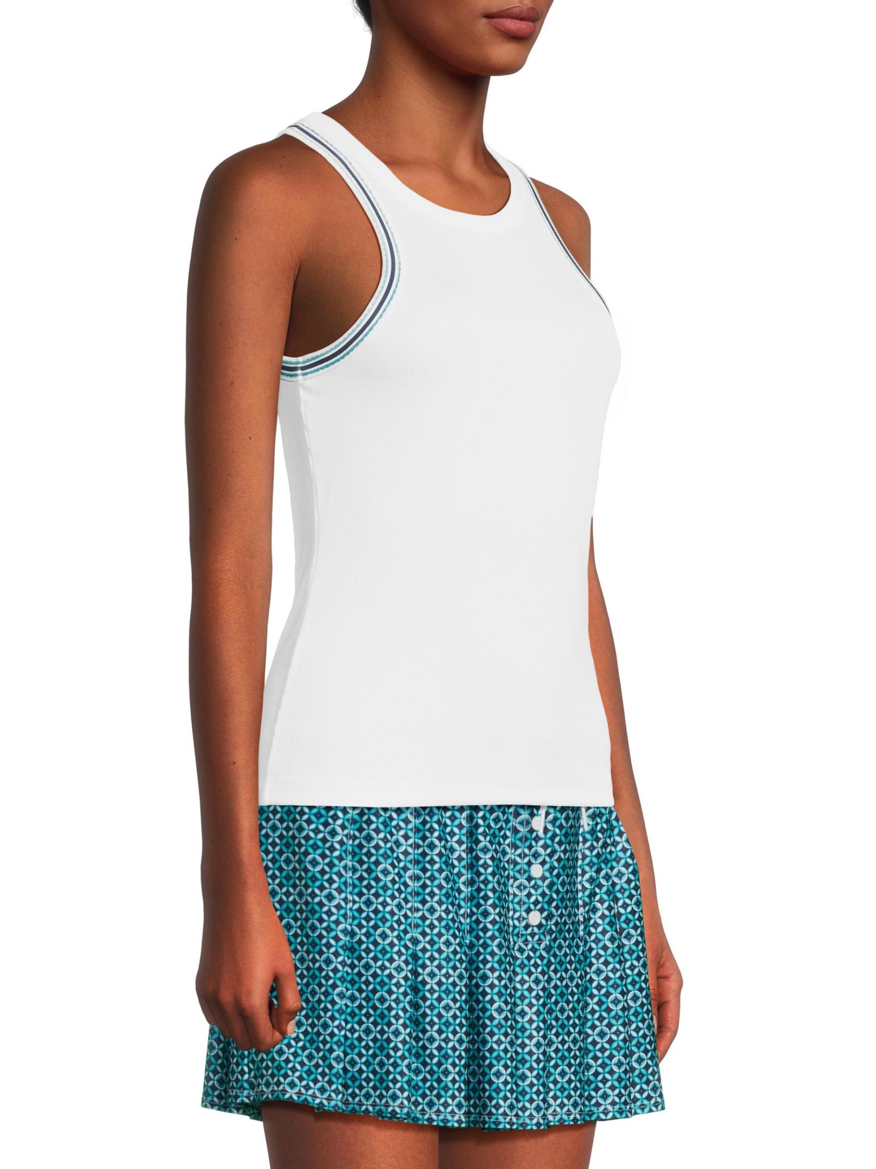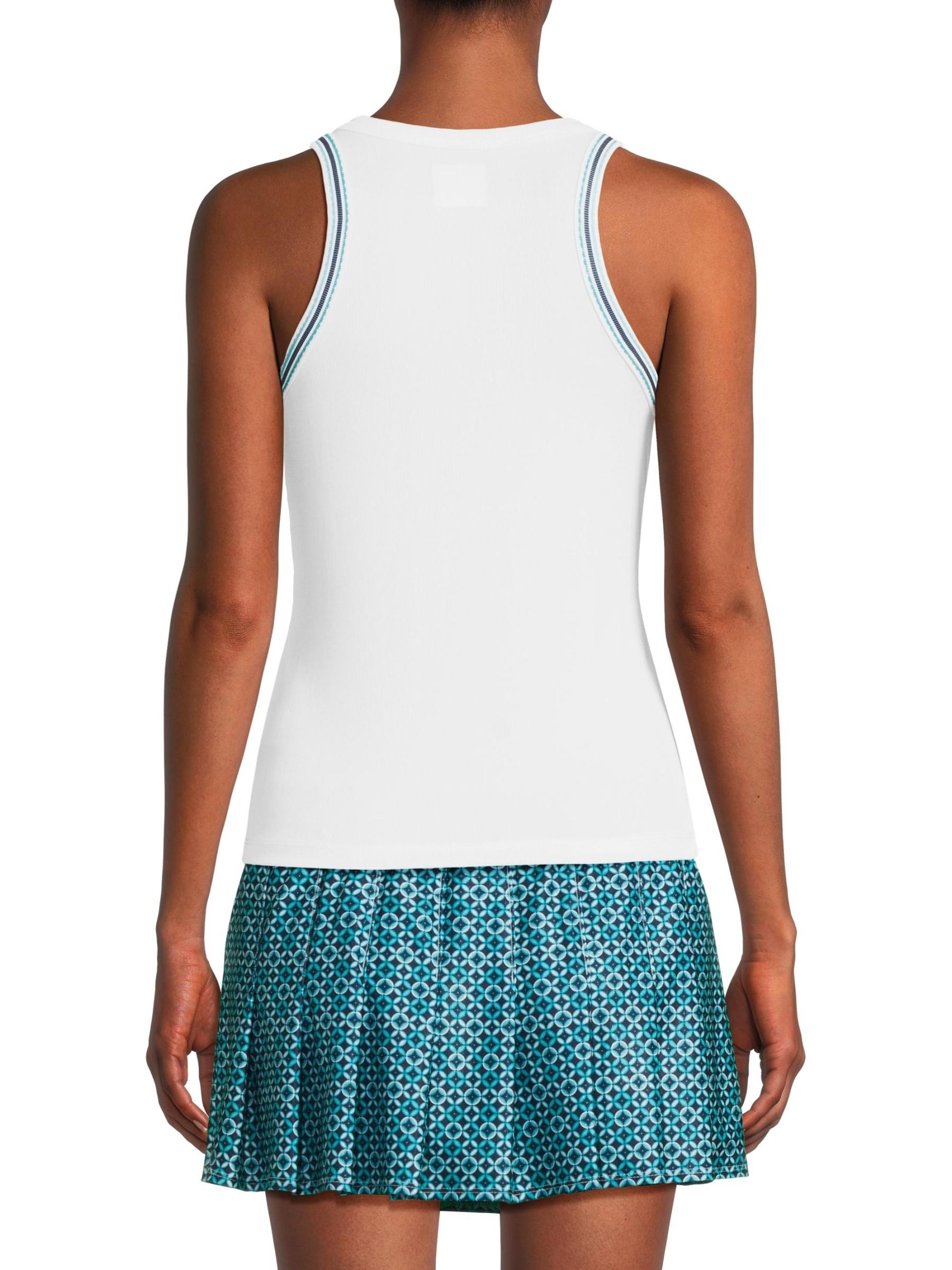 من مجموعة آيليت يو وين. بلوزة Win It بدون أكمام من Lucky in Love مصنوعة من قماش مضلع خفيف الوزن UPF 50+ يتميز بظهر السباق وتفاصيل مخططة.